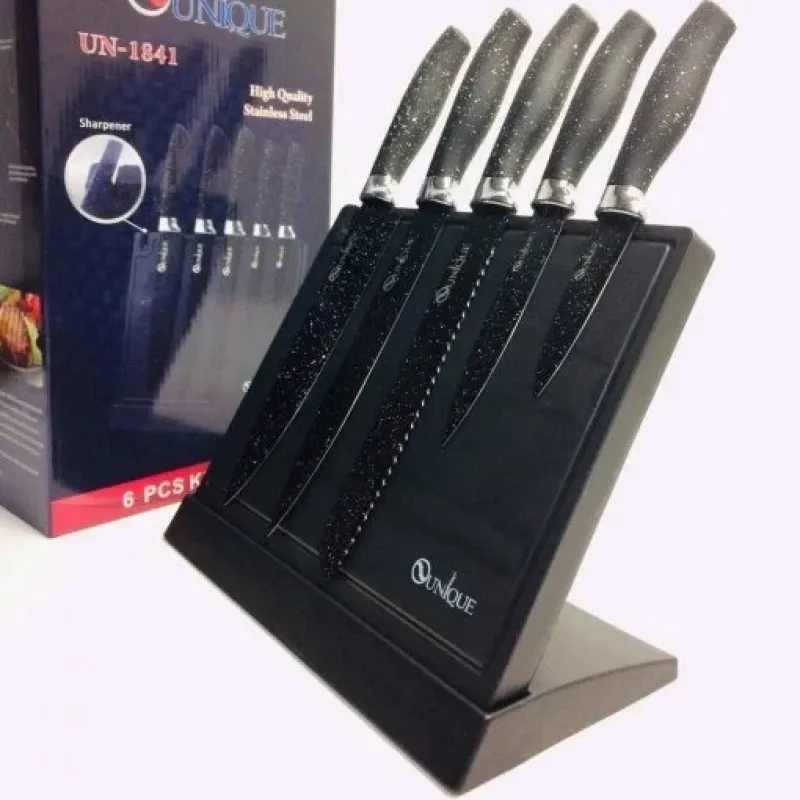 Набір ножів UNIQUE UN-1841 з нержавіючої сталі з підставкою + точилка 6 предметів