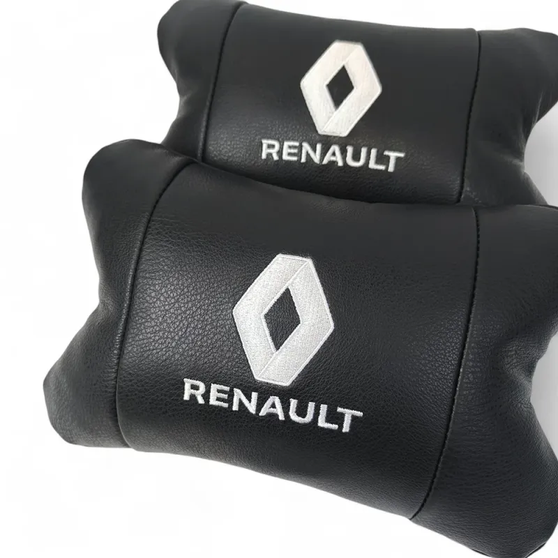 Набор подушек 2шт для автомобиля Renault, натуральная кожа, на подголовник в машину с логотипом Рено