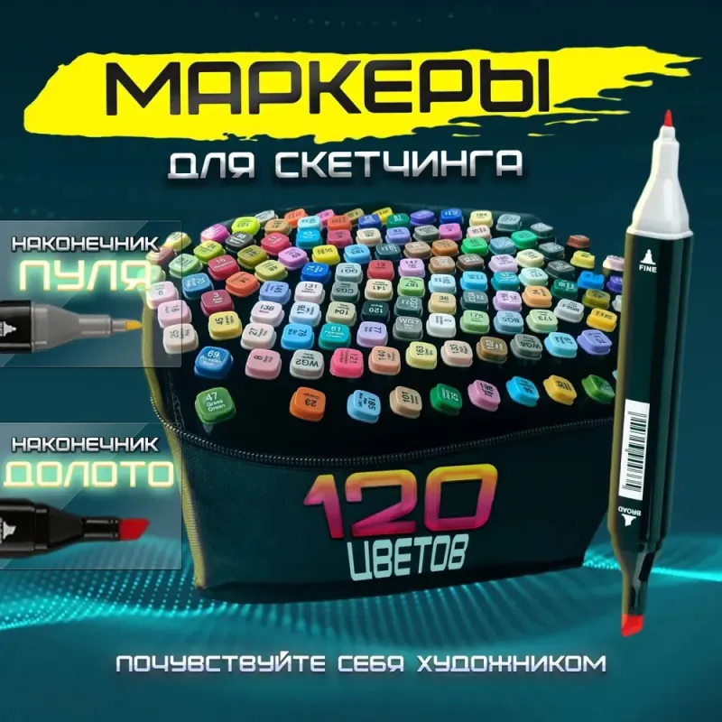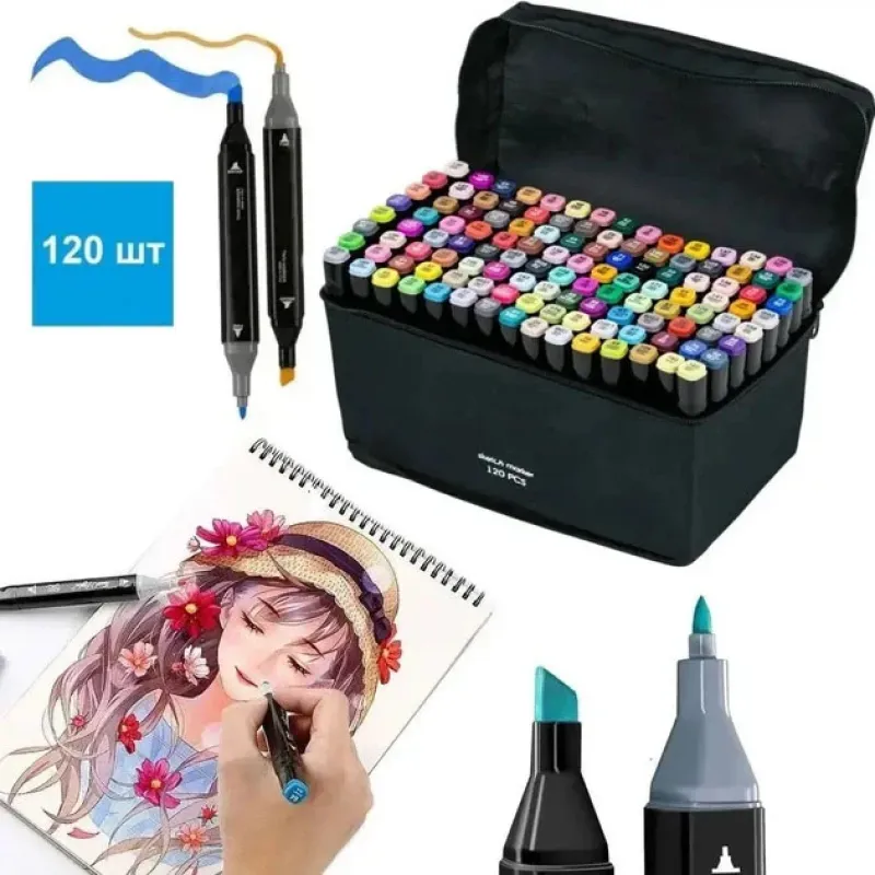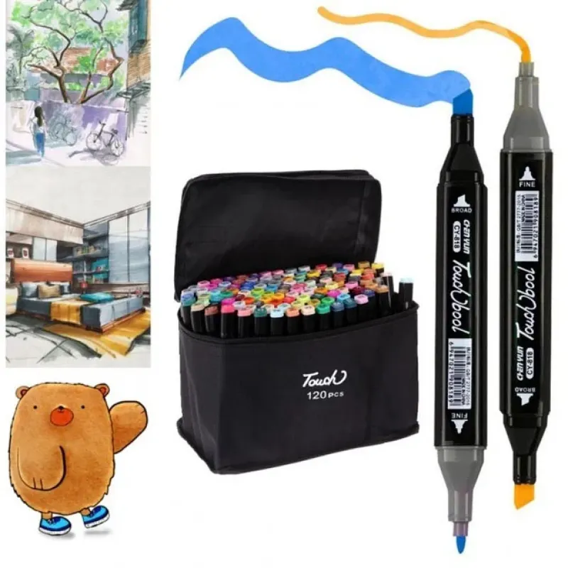 Набор скетч маркеров для рисования Touch 120 шт двусторонние профессиональные фломастеры для художников