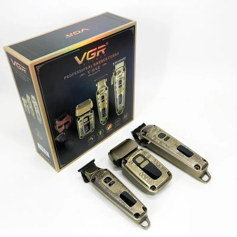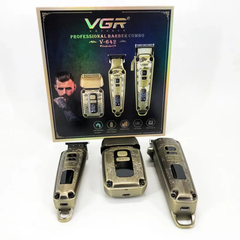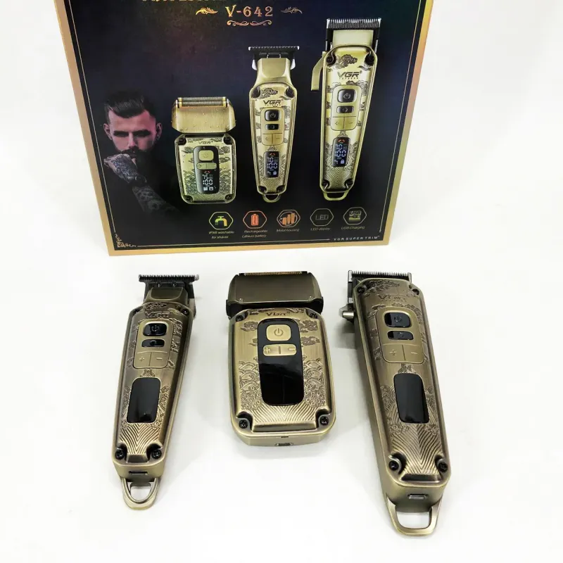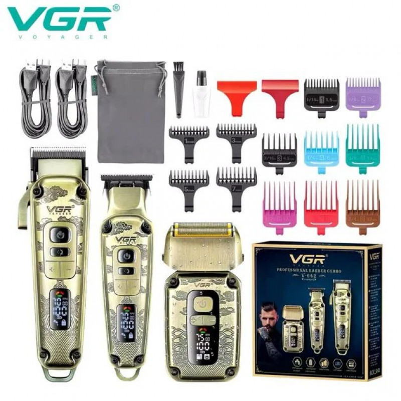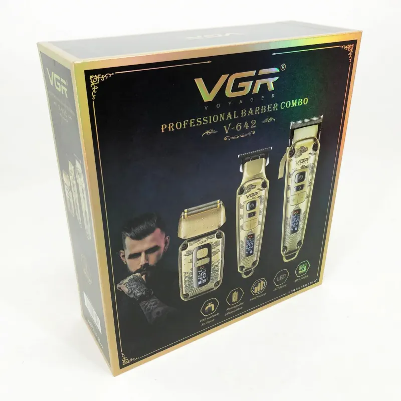 Набор VGR V-642 включает в себя три главных прибора, которыми пользуется каждый мужчина в той или иной мере, это аккумуляторные машинка и триммер для стрижки бороды и волос со сменными насадками и аккумуляторный электрический шейвер для идеальной гладкости кожи, что значительно облегчит жизнь каждому мужчине.