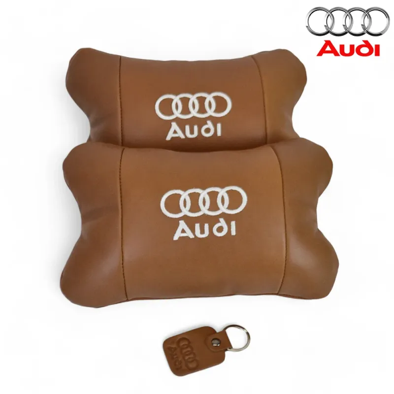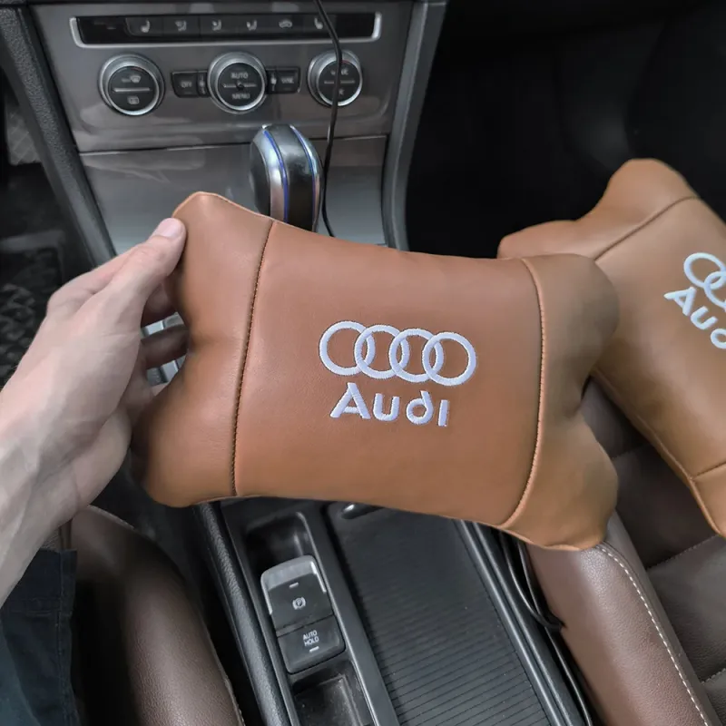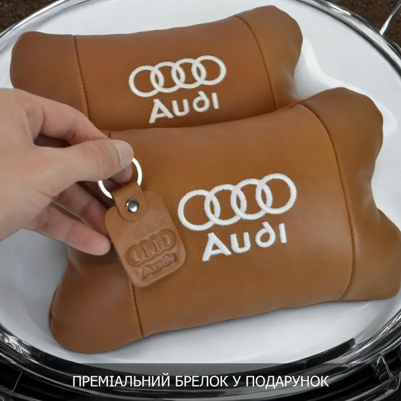 Набор из двух подушек на подголовник Audi, из натуральной коричневой кожи, Подарок мужчине водителю