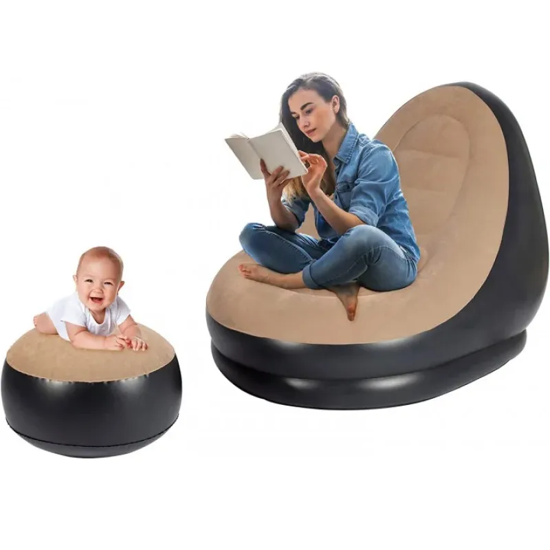 Надувное кресло с пуфом для отдыха AIR SOFA велюровое