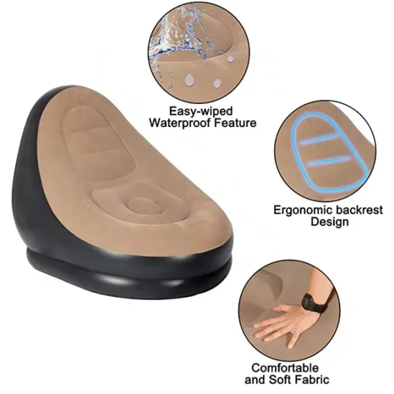 Изготовлено из современных и высококачественных материалов. Верхняя часть кресла и пуфика имеет флокированным покрытие, мягкое и приятное на ощупь. Надувное кресло AIR SOFA — отличный выбор для Вашего отдыха. С этим надувным креслом Вы сможете полностью расслабиться.