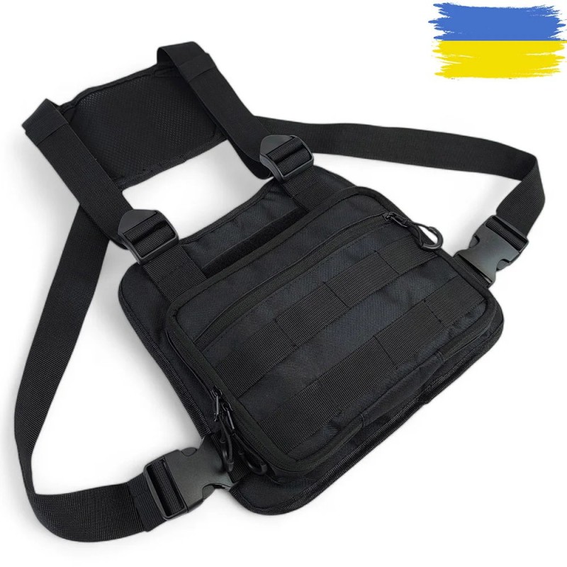 Нагрудная тактическая сумка мужская, сумка через плечо черная разгрузка