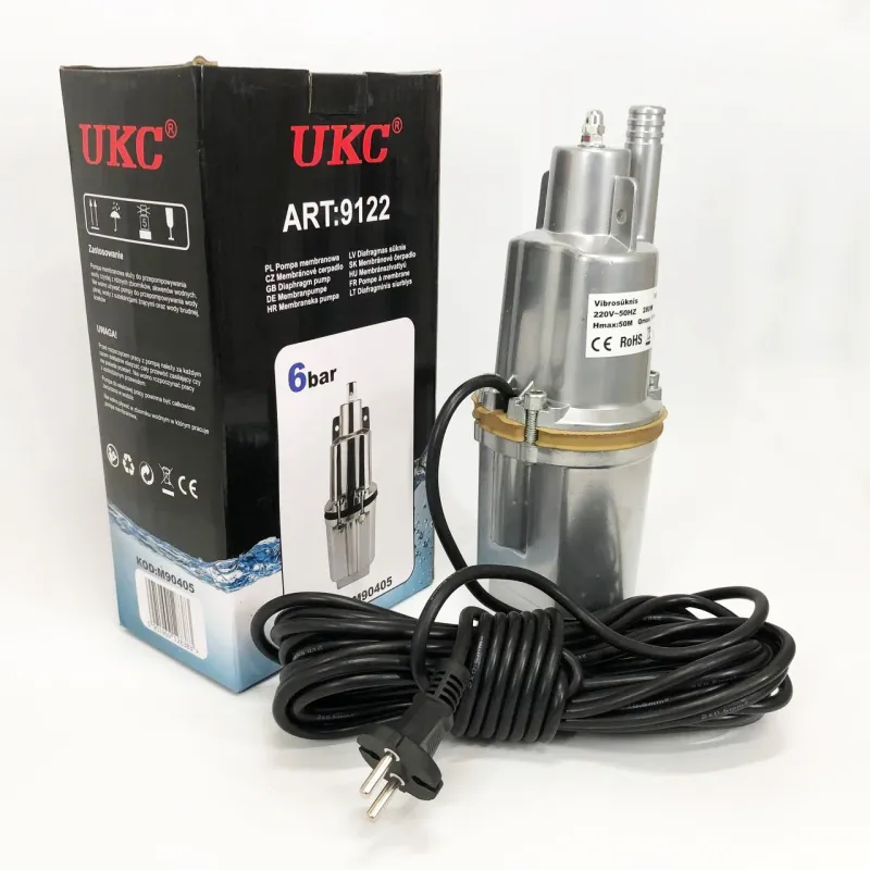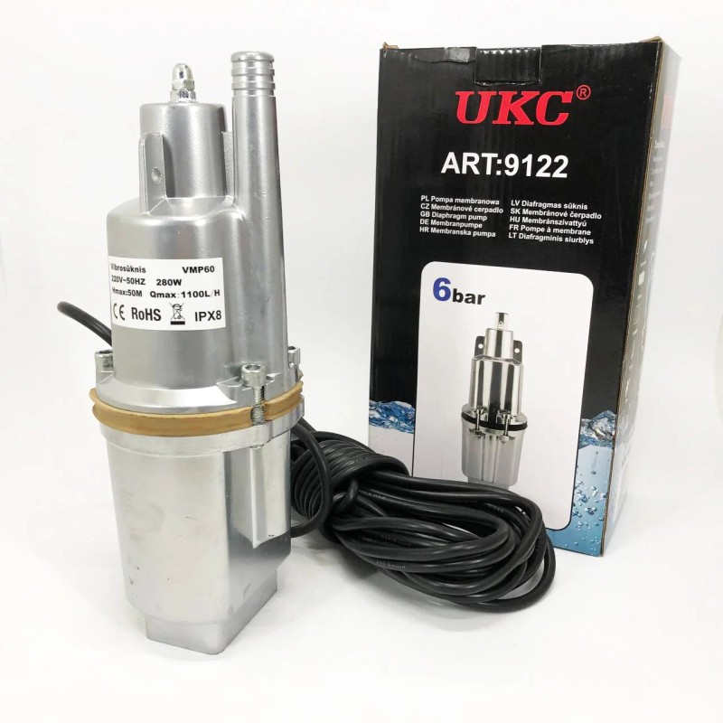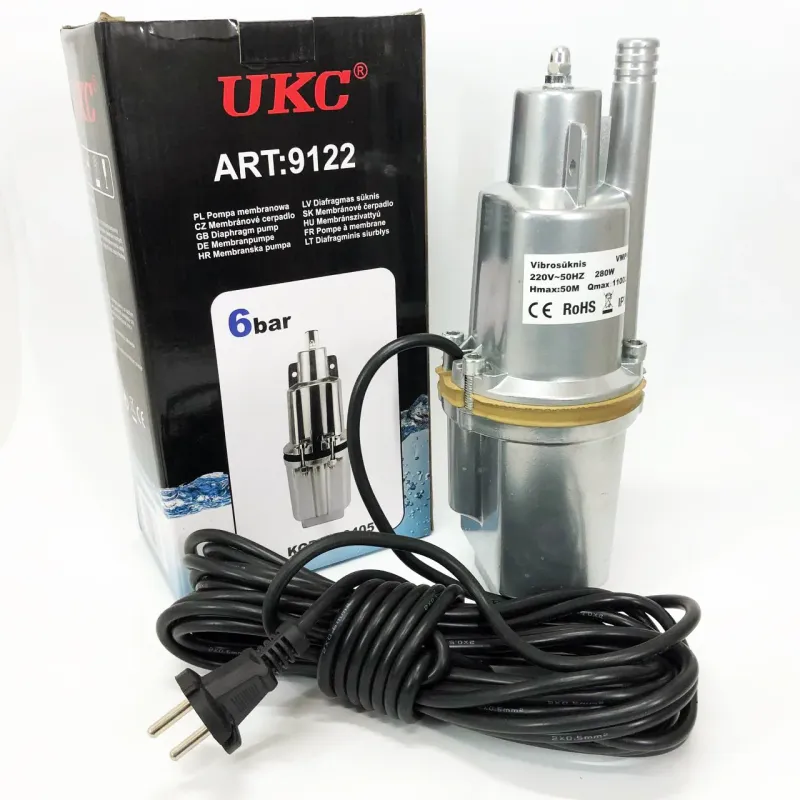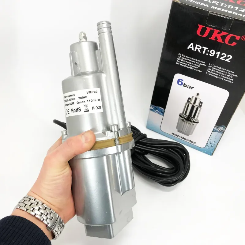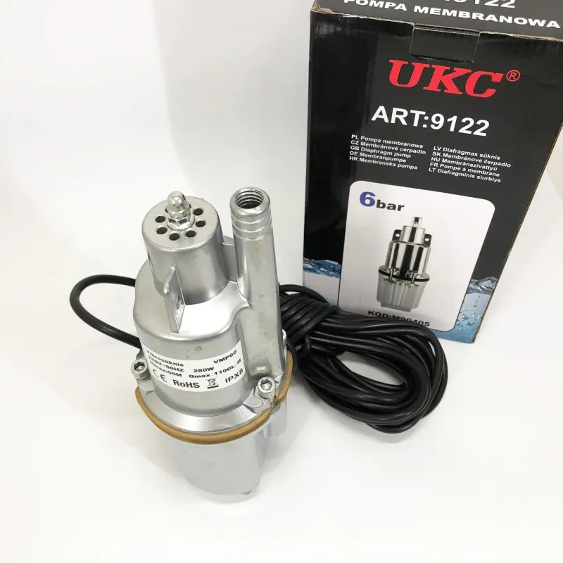 Насос вибрационный 0.25кВт, H 75м, Q 18л/мин, 100мм, 10м кабеля, верхний забор