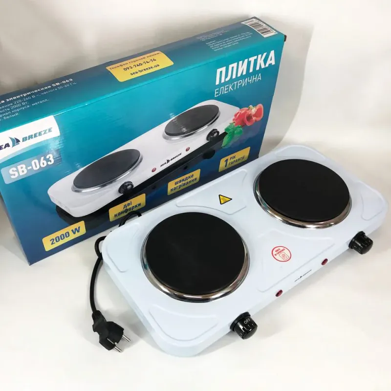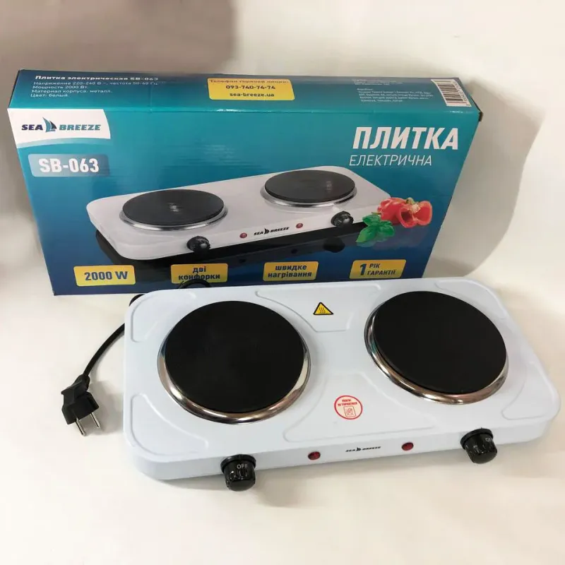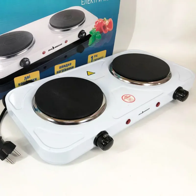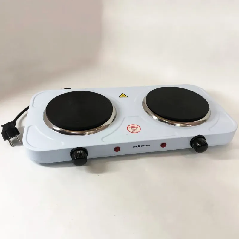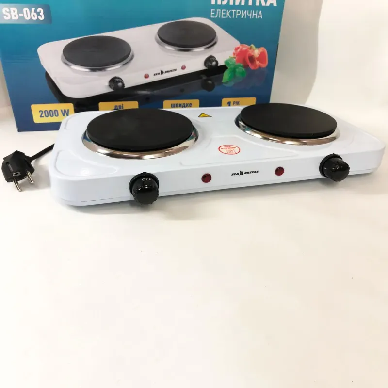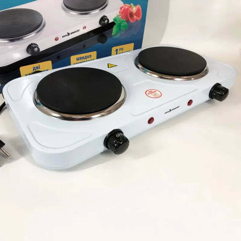 Настольная плита электрическая Sea Breeze SB-063, электроплита двойная, двухкомфорочная. Цвет: белый