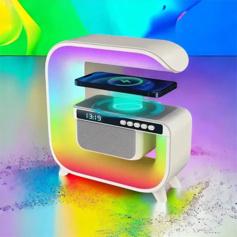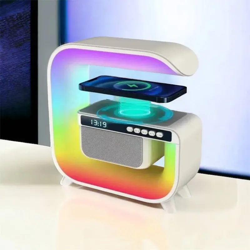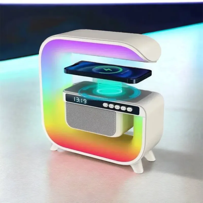 Ночник аккумуляторный RGB G3 с беспроводной зарядкой 15W и Bluetooth колонкой 3W Настольная смарт лампа