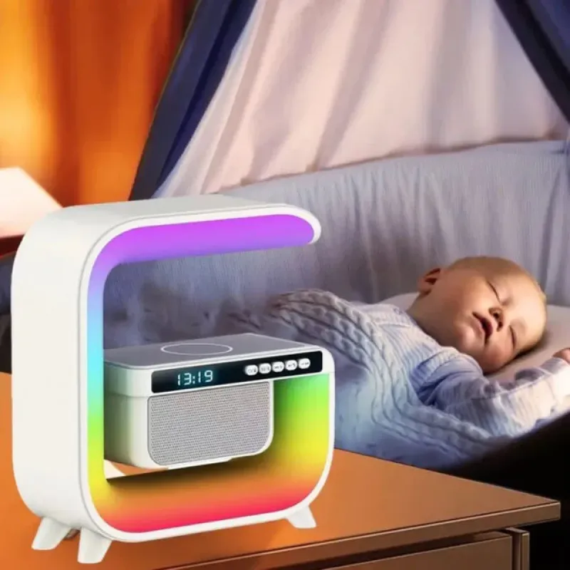 Лампа с аккумулятором Smart Light Sound Machine RGB LIGHT с беспроводной зарядкой 15W - это инновационное устройство, сочетающее в себе несколько полезных функций для создания комфортной атмосферы в спальне или других помещениях. Ночник оснащен RGB подсветкой, которая позволяет выбирать из множества цветов и настроек, чтобы создавать желаемую атмосферу в комнате.