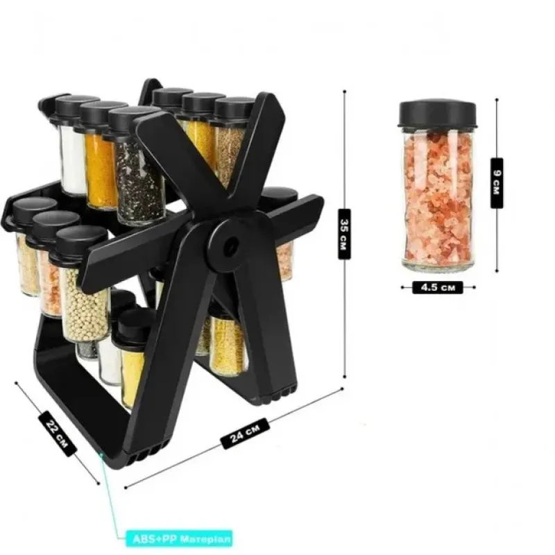 Органайзер для специй и приправ Набор 18 стеклянных емкостей на вращающемся колесе Подставка для специй