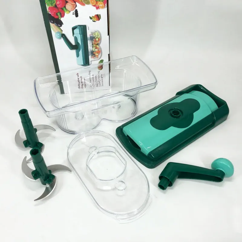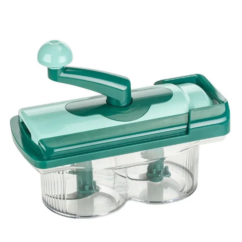 Мультирезка Nicer Twist изготовлена с двумя насадками, каждая из которых оснащена тремя острыми лезвиями. Вращая рукоять, Вы приводите в действие сразу шесть лезвий, благодаря чему процесс измельчения происходит быстро и почти не требует усилий.