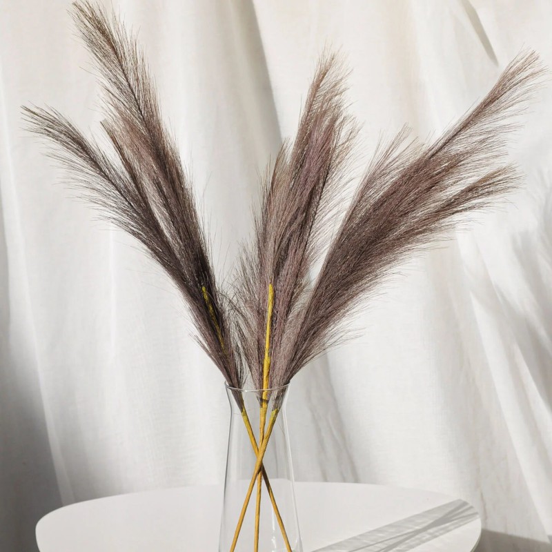 Искусственный пампас в цвете какао выглядит стильно и натурально благодаря пушистым метелкам с мягкой, воздушной текстурой. Теплый коричневый оттенок создает уютный акцент и гармонично сочетается с современными интерьерами в нейтральной или природной палитре. Длинные стебли и пышные соцветия формируют изящную вертикаль, которая придает простору объему и легкости.