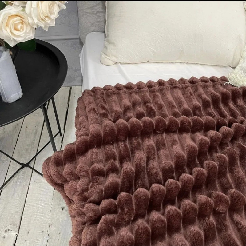 Теги: пледи велсофт, м'які пледи, євро розмір, шоколадний колір, пледи для дому, м'яка полоска, теплі пледи