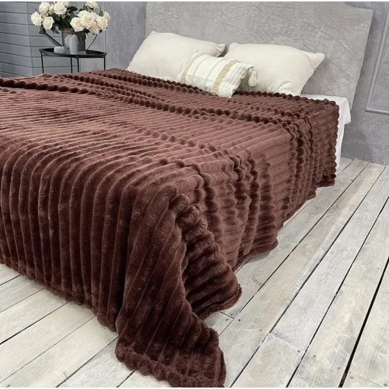 Теги: пледи велсофт, м'які пледи, євро розмір, шоколадний колір, пледи для дому, м'яка полоска, теплі пледи