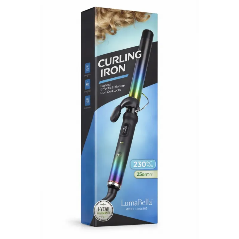 Плойка для завивки волос LumaBella (Ø 25 мм, до 230 °C) Плойка LumaBella — стильный и надёжный инструмент для создания упругих локонов и мягких волн в домашних и профессиональных условиях. Керамическое покрытие с радужным эффектом обеспечивает равномерный