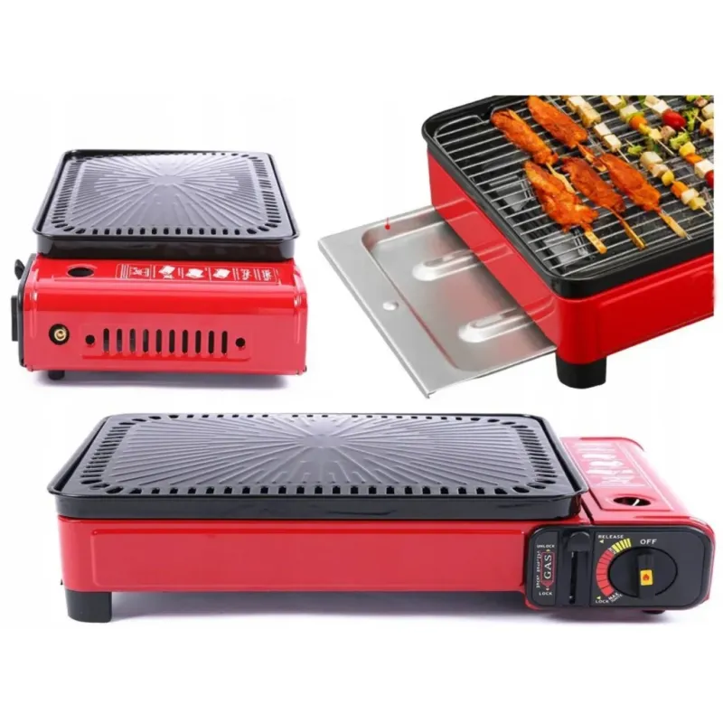 Теги: гриль-барбекю, портативна плита, туристичний гриль, газовий гриль, картридж + балон, червоний гриль, кемпінг плита