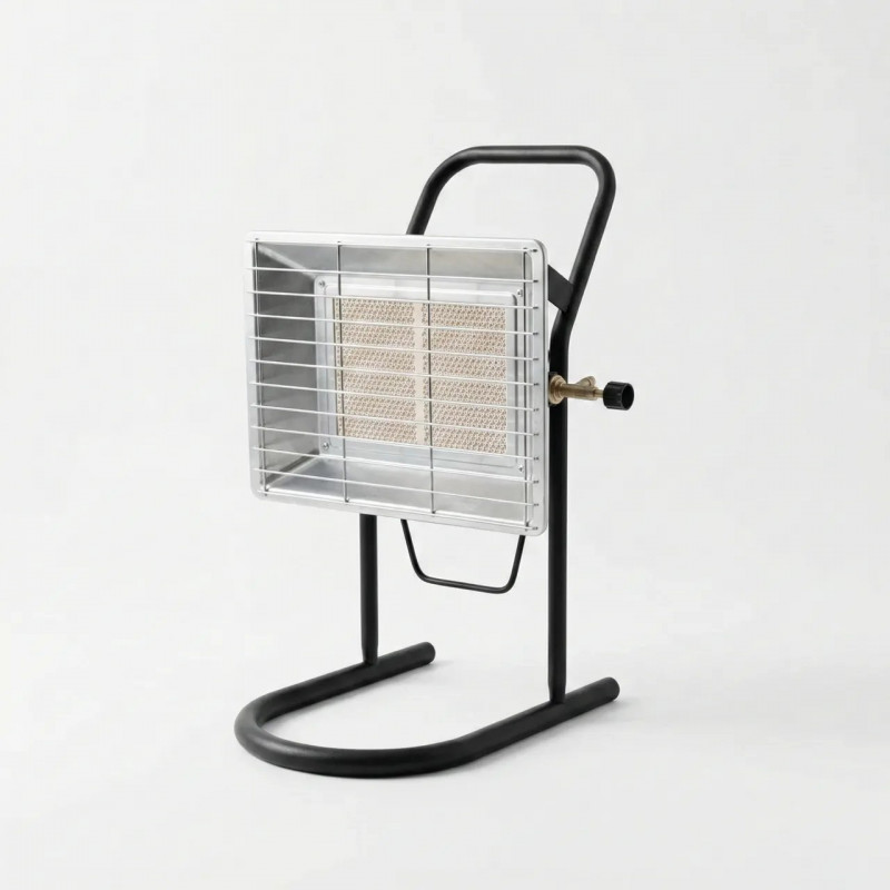 Потужний та мобільний газовий інфрачервоний обігрівач Nurgaz NG-310P — це готове рішення для локального обігріву приміщень, де немає центрального опалення. Головна перевага цієї моделі — наявність стійкої металевої рамки-підставки, яка дозволяє встановлювати прилад на підлогу, стіл або будь-яку іншу рівну поверхню, не тримаючи його на балоні. Прилад має високу теплову потужність 3500 Вт, що дозволяє швидко підняти температуру в гаражі, майстерні, на складі або в наметі площею до 30-40 м². Керамічний елемент нагрівається до червоного кольору, випромінюючи приємне інфрачервоне тепло. Підключення до газового балона здійснюється через штуцер (ялинку) на зворотній стороні корпусу за допомогою шланга та редуктора (не входять у комплект). Характеристики: Модель: Nurgaz NG-310P. Потужність: 3.5 кВт (3500 Вт). Тип: Інфрачервоний, керамічний. Конструкція: Настільна/Підлогова (з ніжкою). Країна виробник: Туреччина. Особливості: Компактна коробка для зберігання, захисна решітка.