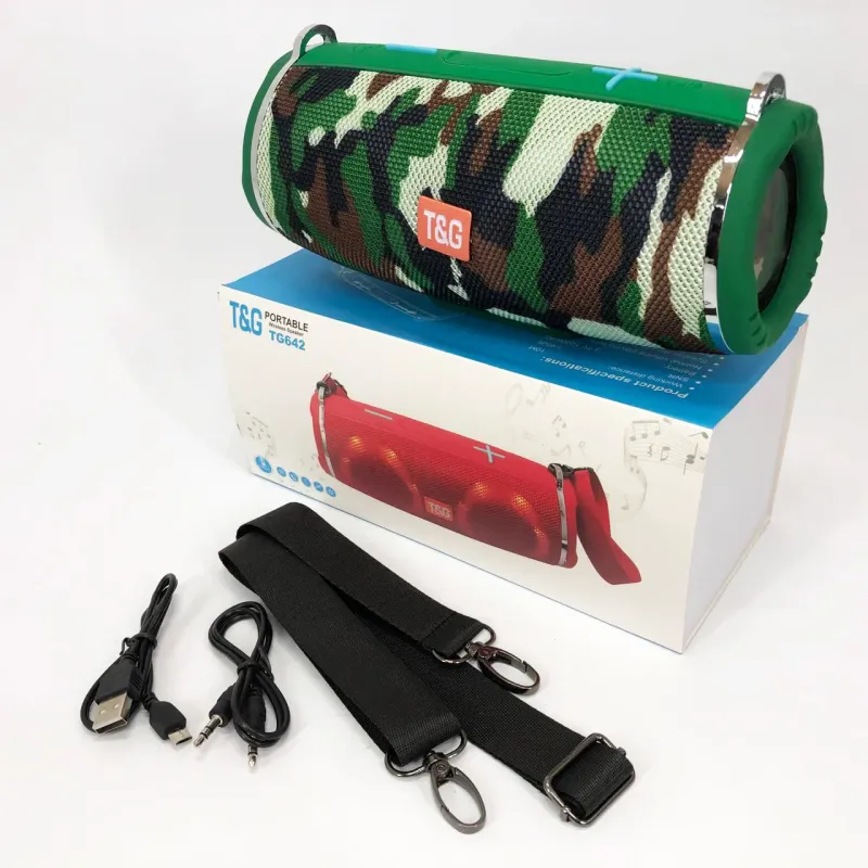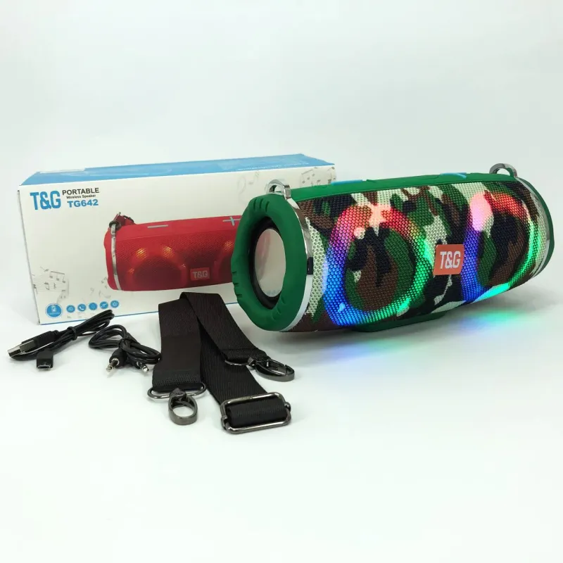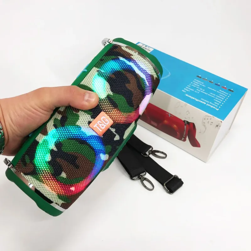 Портативная колонка TG642 с RGB подсветкой и ремешком, колонка для вечеринки. Цвет: камуфляж