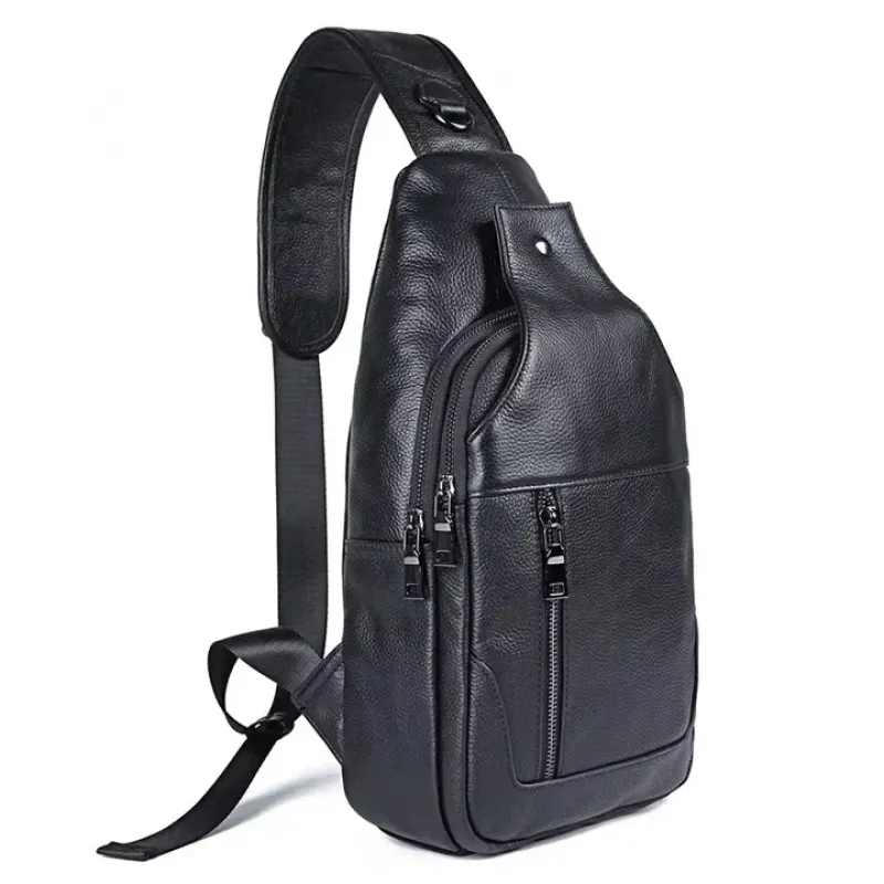 Премиальная мужская кожаная сумка из натуральной итальянской кожи, черная