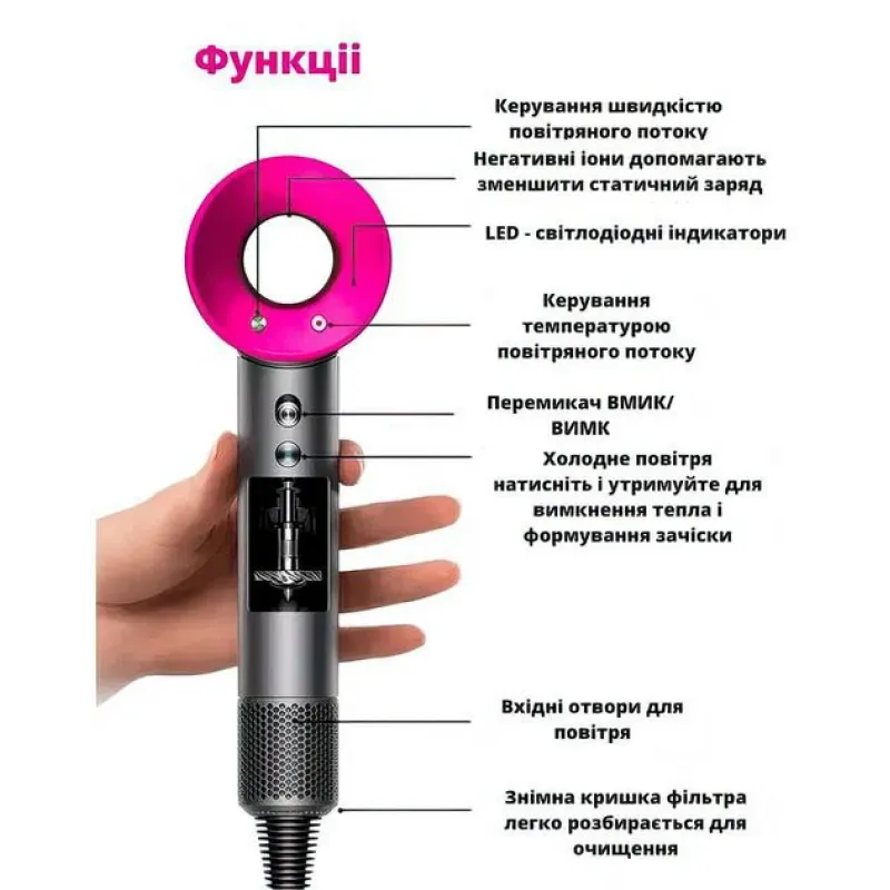 Професійний фен Magic Hair 5в1 з турбо режимом та іонізацією стайлер SmartX 5 магнітних насадок для укладання волосся 16 — швидке та дбайливе сушіння волосся. Потужний мотор скорочує час сушіння вдвічі порівняно зі звичайними феном. Іонізація нейтралізує статичну електрику і робить волосся гладким та блискучим. Кілька режимів температури і потоку повітря підходять для будь-якого типу волосся. Концентратор у комплекті для точного укладання.