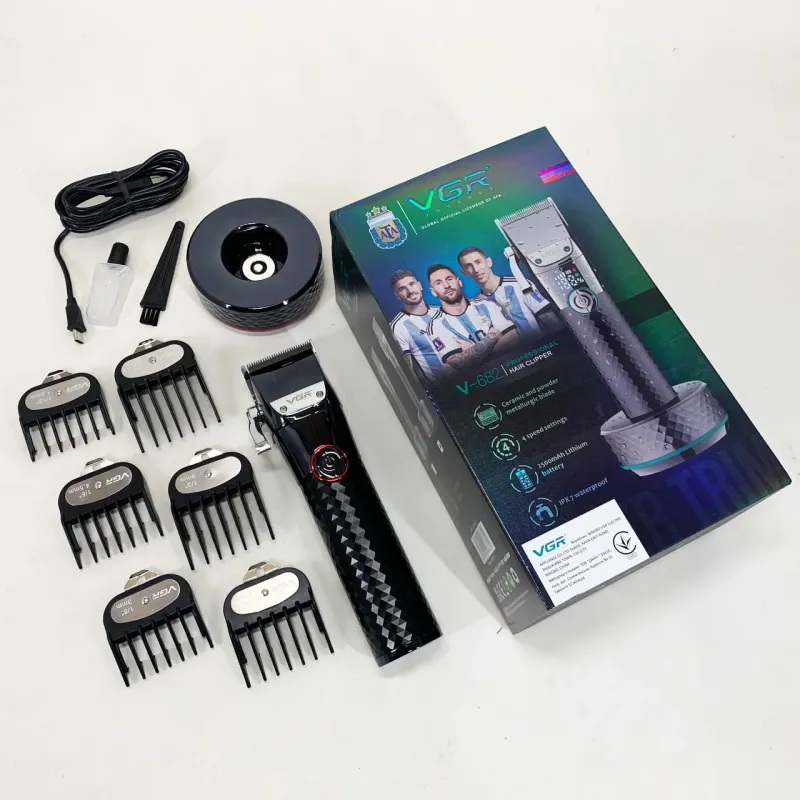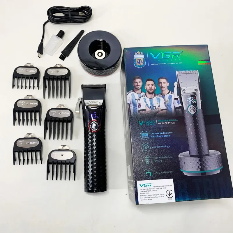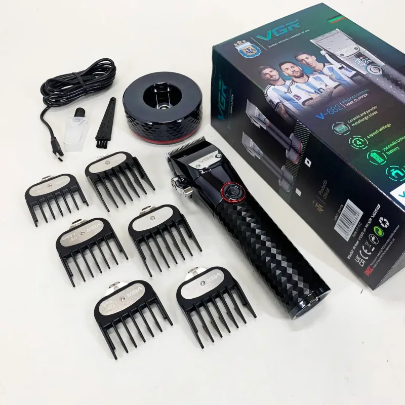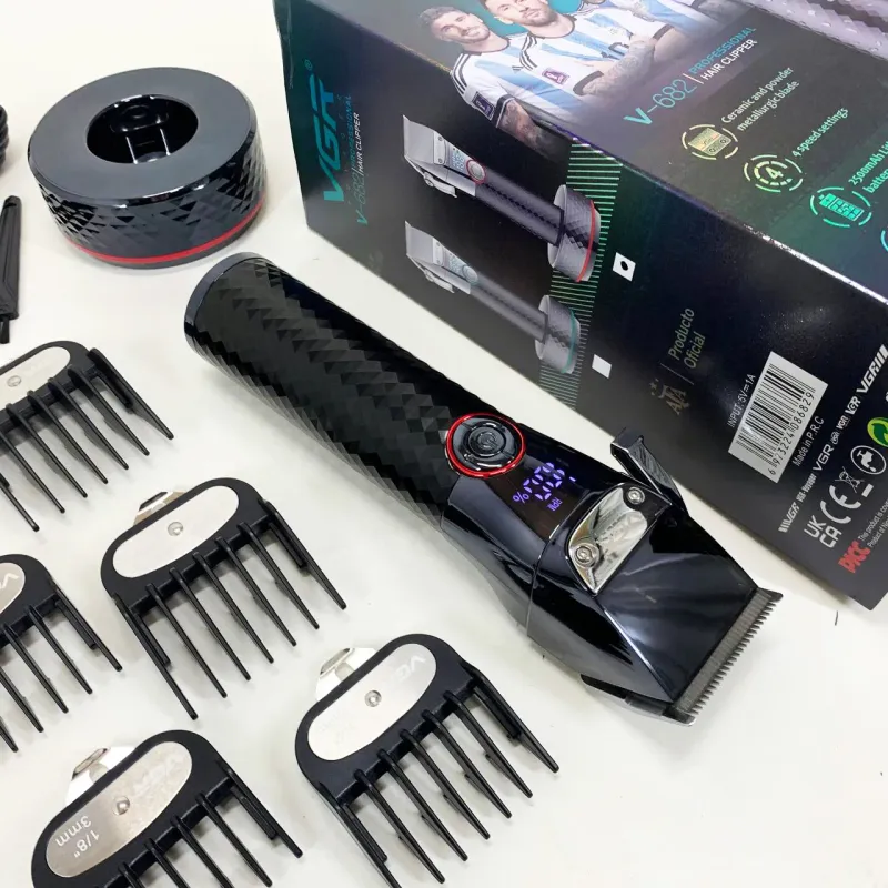 VGR V-682 - это аккумуляторная беспроводная машинка для стрижки волос и бороды с крутым дизайном и фантастической точностью среза. В машинке сошлось воедино все самое необходимое для идеальной стрижки: нож из нержавеющей стали шириной 45 мм и минимальной высотой среза 0.8 мм, литий ионный аккумулятор, увеличенное время автономной работы до 300 минут и LCD дисплей.