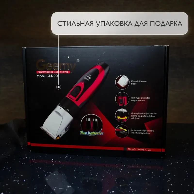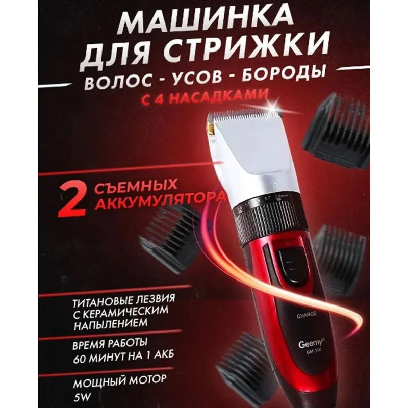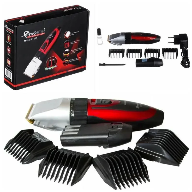 Профессиональная машинка для стрижки волос GEMEI GM-550 с двумя аккумуляторами, Бритва триммер для бороды