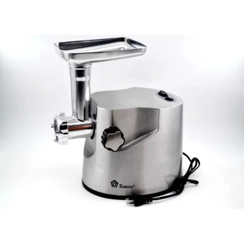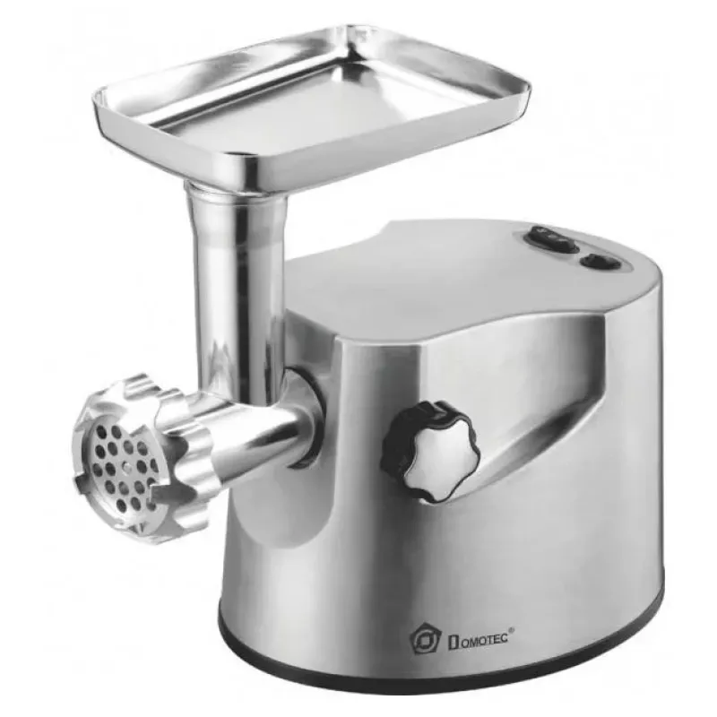 Электрическая мясорубка Domotec MS-2021 - такой подарок порадует любую хозяйку и облегчит ей приготовление любимых блюд.При помощи этой мясорубки можно быстро приготовить качественный фарш для котлет, пельменей, тефтелей, голубцов и других вкуснейших кулинарных шедевров, а также фруктовый и овощной соки.Функция реверса решает проблему наматывания жил на шнек.В комплекте идут три решетки разного диаметра для изменения степени помола мяса.