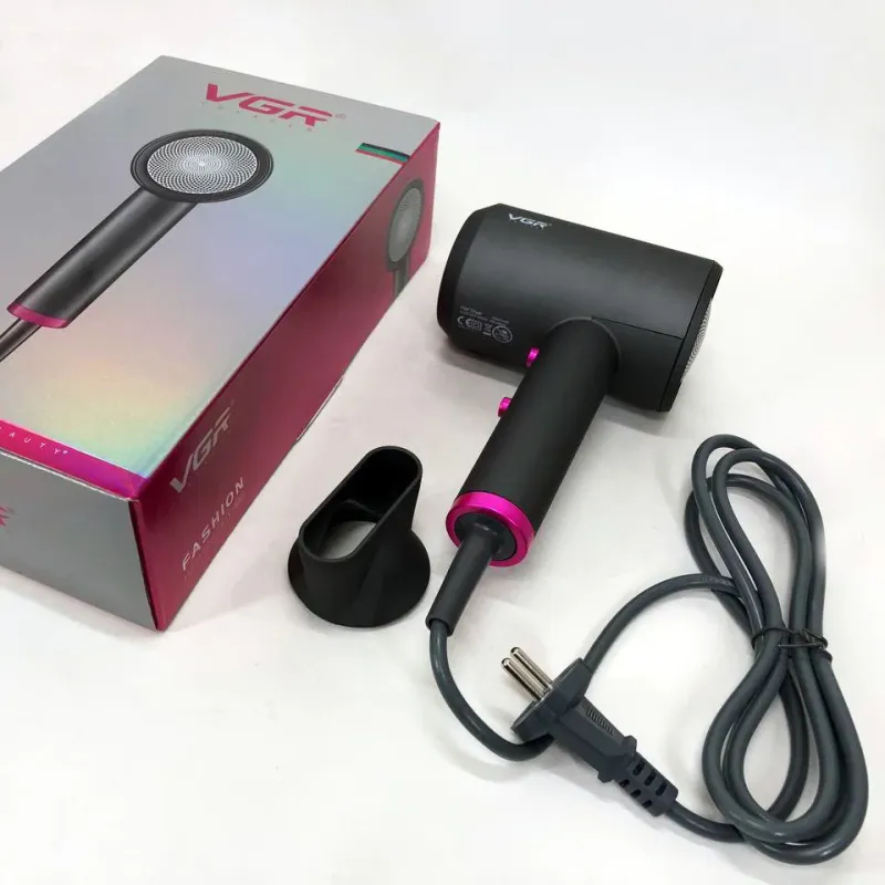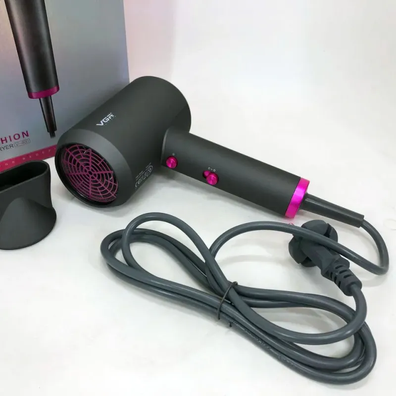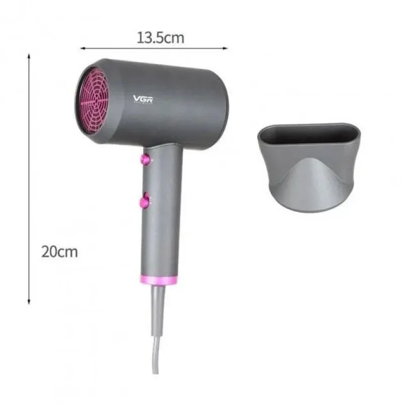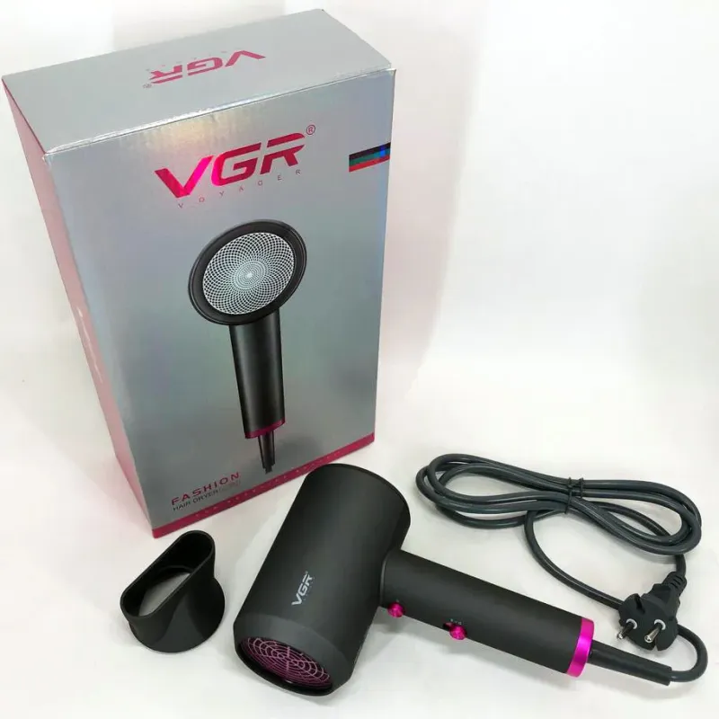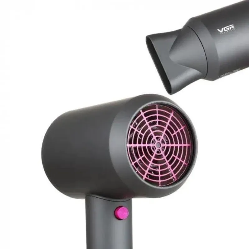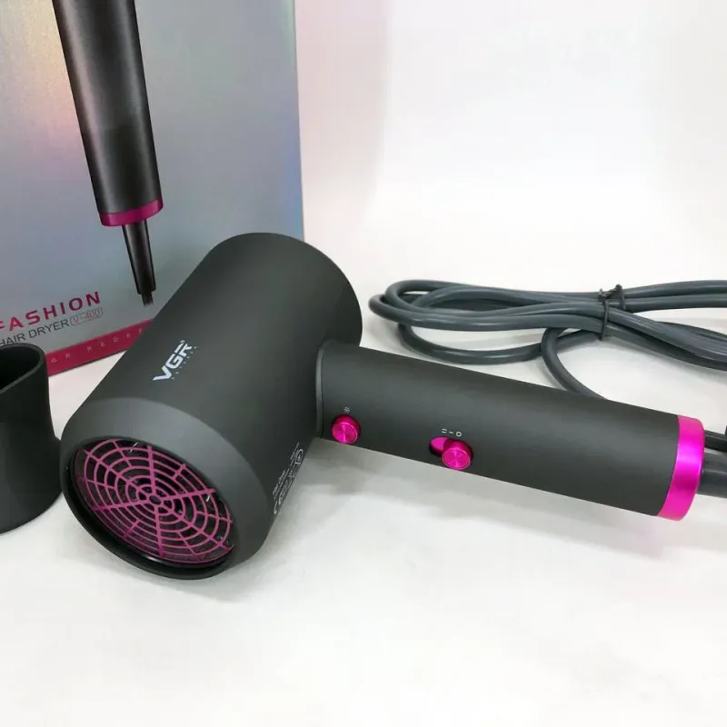 Фен VGR — это идеальный фен, что сделает Ваши волосы еще более шелкoвистыми, ухоженными и красивыми. Данная модель имеет высокую мощность, поэтому укладка с его помощью должна быть быстрой и легкой. Корпус фена сделан из качественного термостойкого пластика. При этом есть возможность регулировки трех температурных режимов и двух скоростей воздушного потока, что позволяет подбирать необходимые режимы работы под каждую укладку и тип волос. Фен таким образом заботится о них и не дает пересушить.