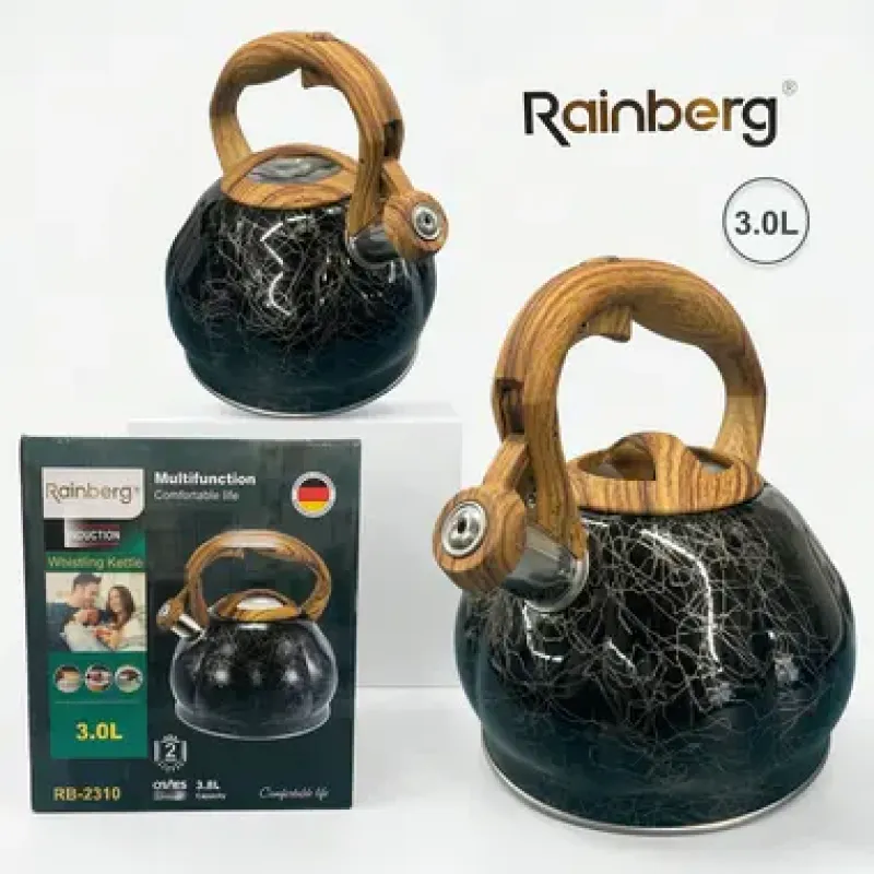 Теги: чайник зі свистком, Rainberg, 3 літри, індукція, посуд, shtyrman.