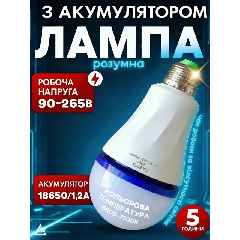 Теги: розумна лампочка, акумуляторна лампа, аварійне освітлення, LED лампа Е27, енергозберігаюча лампочка, лампа при відключенні світла, автономна лампочка