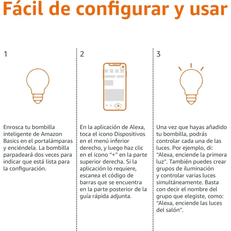 Просто вкрутіть лампу в стандартний патрон E27, підключіть до Wi-Fi через додаток Alexa — і готово. Керуйте освітленням голосом, змінюйте колір під настрій, створюйте розклади та економте до 80% електроенергії порівняно зі звичайними лампами.