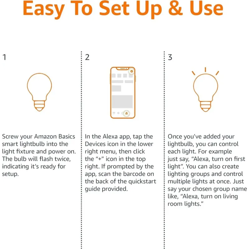Вкрутіть лампочку в стандартний цоколь E27, підключіть до додатку Alexa через Wi-Fi та почніть керувати голосом. Налаштуйте розклади увімкнення, створюйте сценарії освітлення та контролюйте все зі смартфона.