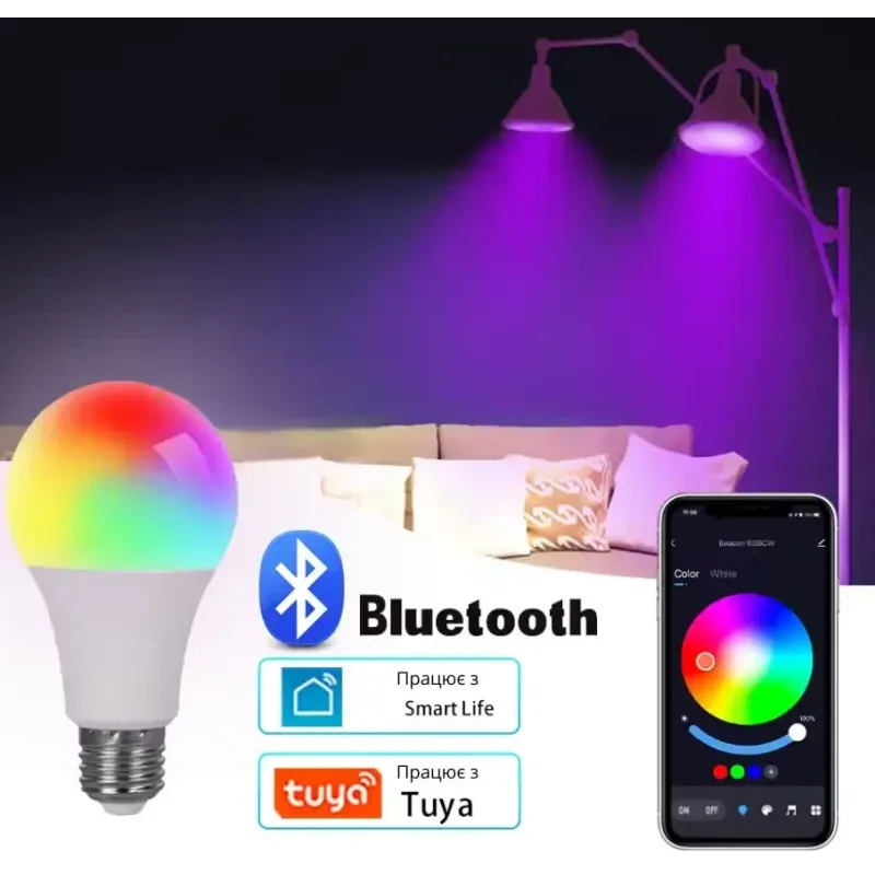 Лампочка підключається до вашої домашньої WI-FI мережі та керується через зручний додаток на смартфоні. Ви можете вмикати, вимикати, регулювати яскравість та встановлювати таймери з будь-якого місця. Технологія LED забезпечує економію до 80% електроенергії порівняно зі звичайними лампами.