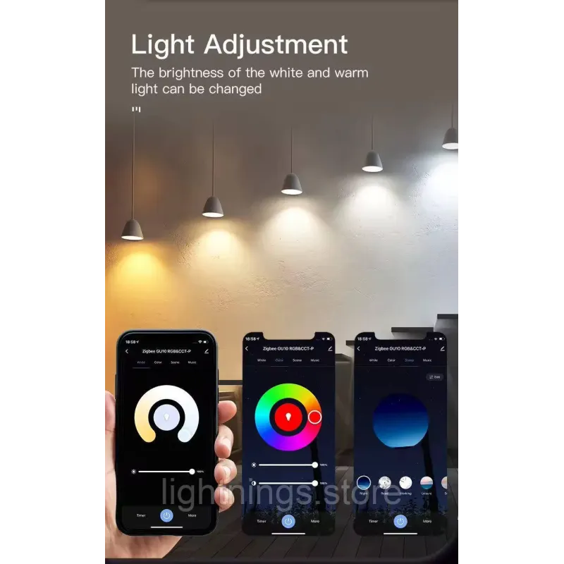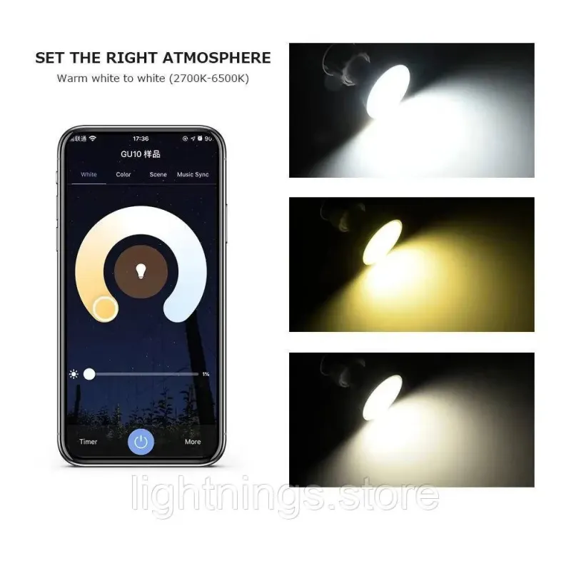 Лампа підключається безпосередньо до вашої WiFi-мережі без додаткового обладнання. Встановіть безкоштовний додаток Tuya або SmartLife, вкрутіть лампу в стандартний цоколь GU10 — і керуйте освітленням зі смартфона з будь-якої точки світу. Налаштуйте сценарії, таймери, синхронізуйте з музикою або керуйте голосом.