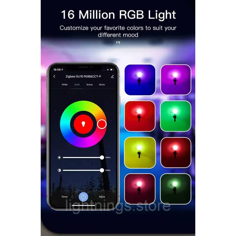 - **16 мільйонів кольорів RGB+CCT** — від теплого білого до холодного, від романтичного червоного до енергійного синього