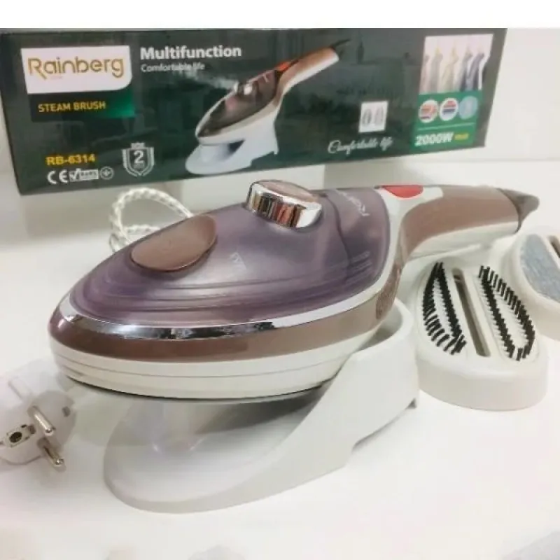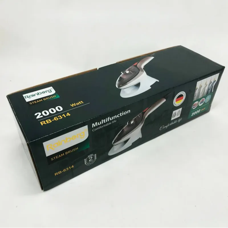 Ручной отпариватель для одежды Rainberg RB-6314 2000 Вт с двумя сменными насадками можно использовать дома, в офисе или в путешествии. Он вырабатывает непрерывный поток пара, который хорошо проникает в ткань и распрямляет складки, чистит, дезинфицирует и избавляет от неприятного запаха. Многофункциональность - самое главное качество этого бытового прибора. Он создан для эффективной очистки, дезинфекции и обезжиривания абсолютно различных поверхностей, независимо от их типа и назначения и может с легкостью применяться как для чистки одежды, так и для ухода за мягкой мебелью, мытья окон и кафеля. Преимущества: Отпариватель имеет компактные размеры и неприхотлив в обслуживании, идеален для использования как в домашних условиях так и в поездках. Отпариватель предоставляет возможность быстрой и качественной глажки без неудобной и громоздкой гладильной доски. У отпаривателя удобная не нагревающаяся ручка.