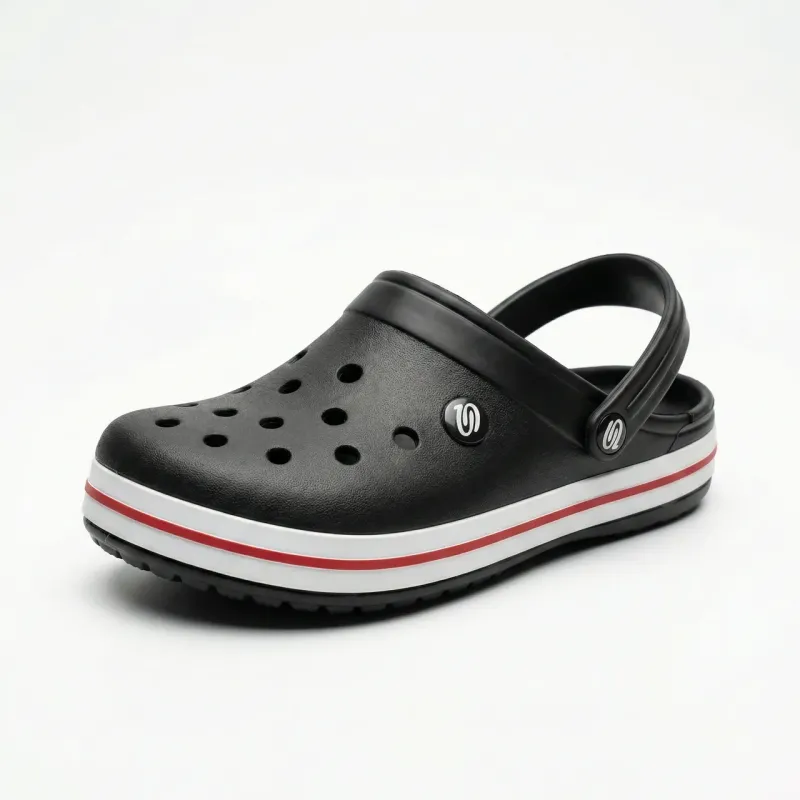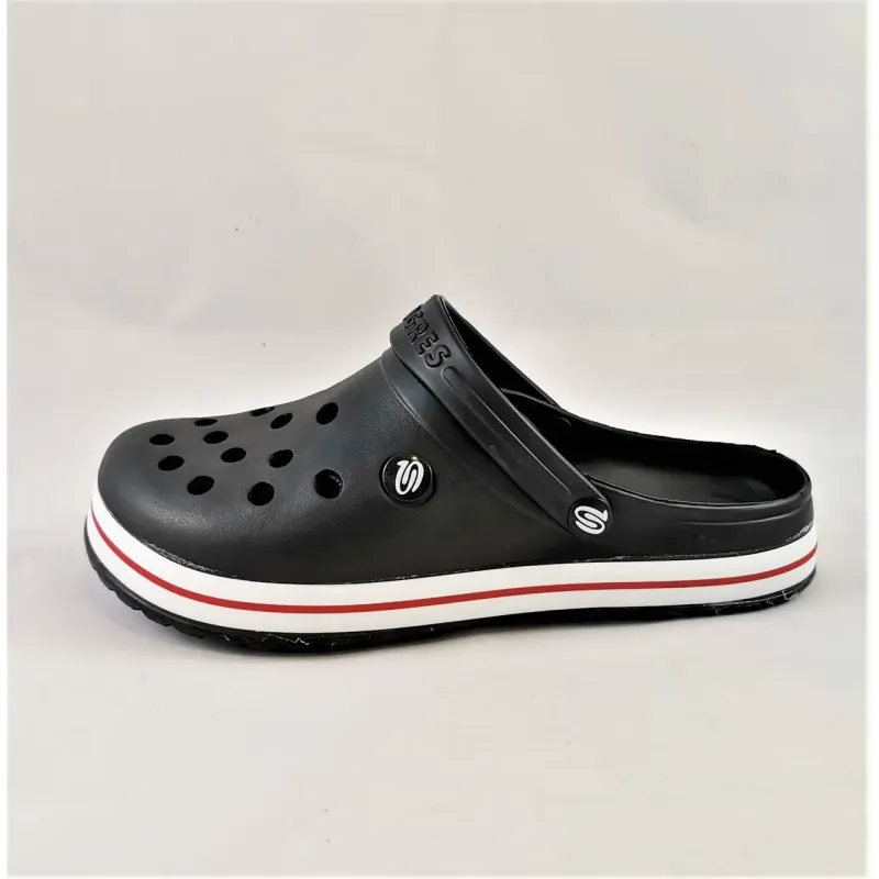 Сабо крокси чорні з червоною смугою — стильне та зручне взуття для активного відпочинку
