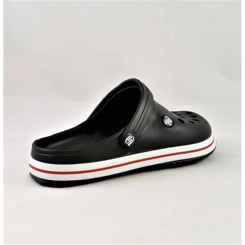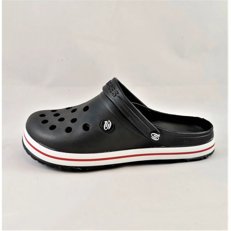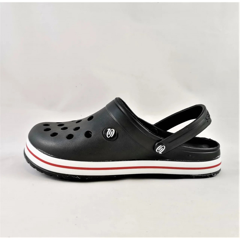 Чоловічі сабо крокси в чорному кольорі з яскравою червоною смугою — це ідеальне поєднання комфорту, практичності та сучасного спортивного стилю. Це універсальне взуття створене для тих, хто цінує свободу руху та зручність у будь-якій ситуації. Виготовлені з високоякісної пінки EVA, ці сабо забезпечують м'яку амортизацію при ходьбі, захищають стопу від перегріву та ідеально підходять для носіння на пляжі, біля басейну, в спортзалі або просто для повсякденного використання в теплу погоду.
