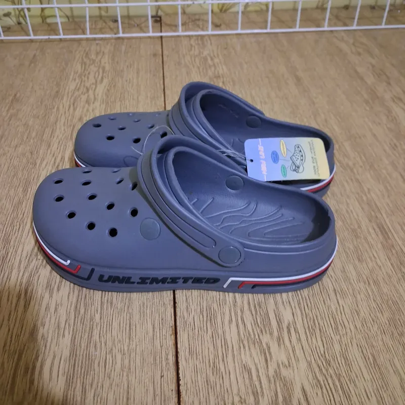 Сірі сабо-крокси моделі "Unlimited" — ідеальне взуття для активного відпочинку, дачі та роботи. Легкі, зручні та практичні капці із сучасного матеріалу ЕВА (EVA пінка). Ця модель універсальна: підходить для пляжу, відвідування басейну, роботи в саду або як зручне змінне взуття (наприклад, для медпрацівників або кухарів). Переваги цієї моделі: Комфорт: Матеріал EVA дуже легкий, взуття практично не відчувається на нозі. Практичність: Повністю вологостійкі, легко миються та швидко сохнуть. Ергономіка: Ремінець п'яти фіксує стопу, дозволяючи використовувати їх як сандалії при ходьбі, або можна перекинути його вперед, перетворивши взуття на шльопанці. Дизайн: Стильний сірий колір зі спортивною смугою на підошві та написом "Unlimited". Вентиляція: Отвори забезпечують циркуляцію повітря, нога не пітніє. Характеристики: Матеріал: 100% ЕВА (EVA) Сезон: Літо / Цілий рік (для приміщень) Колір: Сірий Розмірний ряд: 36-41