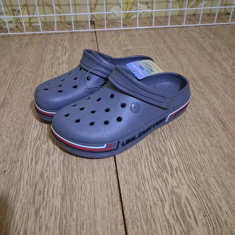 Сірі сабо-крокси моделі "Unlimited" — ідеальне взуття для активного відпочинку, дачі та роботи. Легкі, зручні та практичні капці із сучасного матеріалу ЕВА (EVA пінка). Ця модель універсальна: підходить для пляжу, відвідування басейну, роботи в саду або як зручне змінне взуття (наприклад, для медпрацівників або кухарів). Переваги цієї моделі: Комфорт: Матеріал EVA дуже легкий, взуття практично не відчувається на нозі. Практичність: Повністю вологостійкі, легко миються та швидко сохнуть. Ергономіка: Ремінець п'яти фіксує стопу, дозволяючи використовувати їх як сандалії при ходьбі, або можна перекинути його вперед, перетворивши взуття на шльопанці. Дизайн: Стильний сірий колір зі спортивною смугою на підошві та написом "Unlimited". Вентиляція: Отвори забезпечують циркуляцію повітря, нога не пітніє. Характеристики: Матеріал: 100% ЕВА (EVA) Сезон: Літо / Цілий рік (для приміщень) Колір: Сірий Розмірний ряд: 36-41