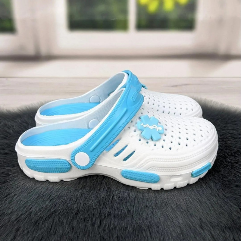 Теги: сабо, крокси, жіноче взуття, піна, білий колір, бірюзовий колір, Гіпаніс