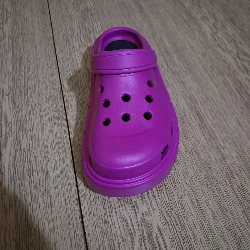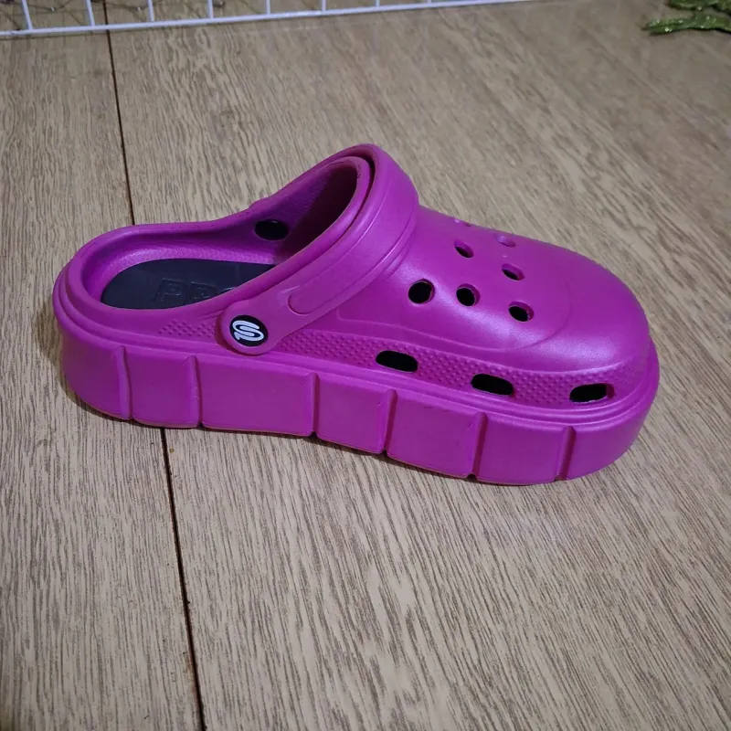 Жіночі крокси на платформі Progress — додайте яскравих барв у своє літо! Ця модель — справжній хіт сезону! Стильні, масивні та неймовірно зручні сабо від бренду Progress у насиченому фіолетовому кольорі стануть вашим улюбленим взуттям. Завдяки потовщеній підошві (платформі) вони не лише додають кілька сантиметрів до зросту, але й виглядають дуже сучасно та модно. Чому варто обрати ці крокси: Трендовий дизайн: Масивна підошва — це головний тренд останніх років. Вона робить ніжку візуально стрункішою. Неймовірний комфорт: Виготовлені з піни EVA — матеріалу, який дуже легкий, м'який та пружний. Ноги в них не втомлюються навіть після цілого дня ходьби. Універсальність: Поворотний п'ятковий ремінець дозволяє носити їх як сабо (фіксуючи ногу) або як звичайні шльопанці. Практичність: Легко миються, миттєво сохнуть, не бояться води та піску. Ідеальні для пляжу, басейну, дачі, прогулянок містом або як зручне змінне взуття для медиків та кухарів. Характеристики: Бренд: Progress. Матеріал: Піна EVA. Тип підошви: Платформа (потовщена). Колір: Фіолетовий (Fuchsia). Сезон: Літо / Цілий рік (для приміщень). Розміри: 36, 37, 38, 39, 40, 41. 💜 Будьте в тренді з яскравими кроксами Progress — замовляйте свій розмір прямо зараз!