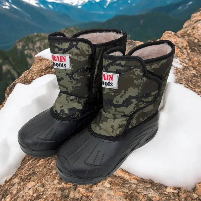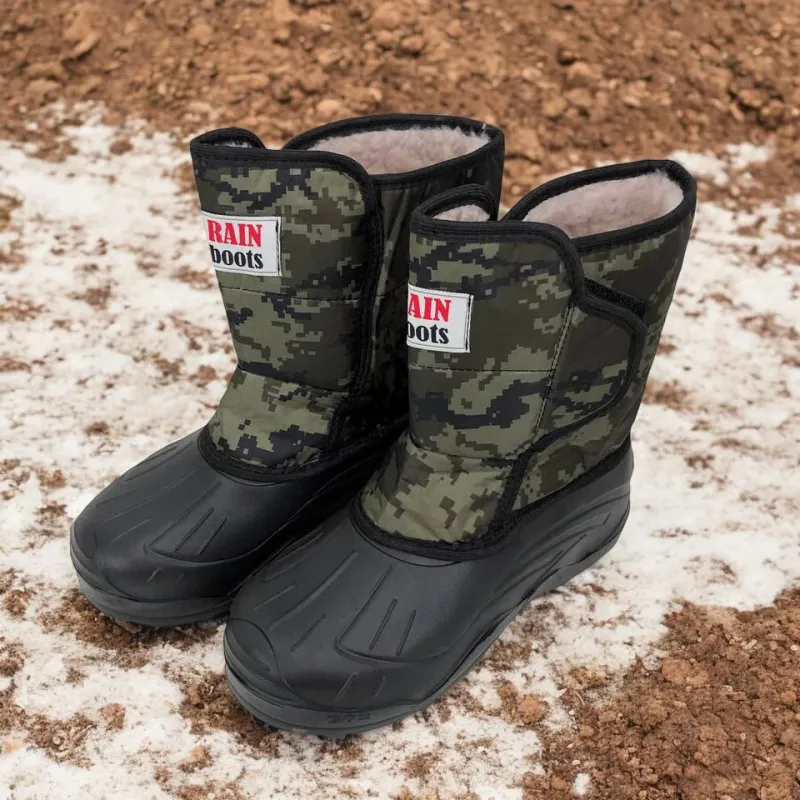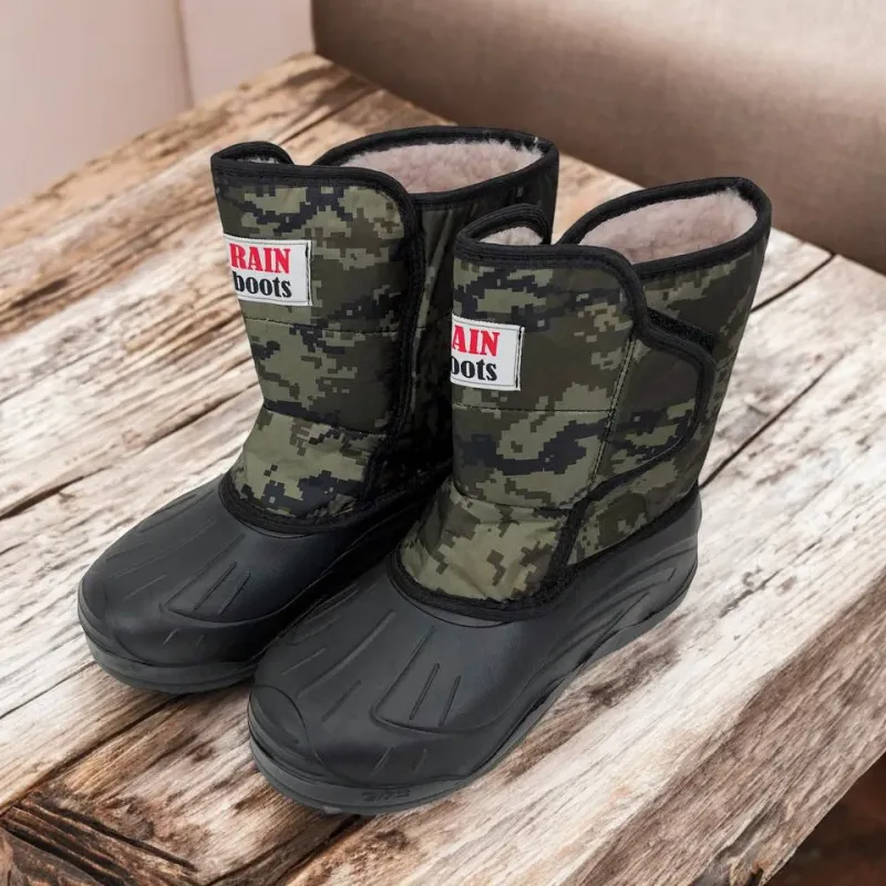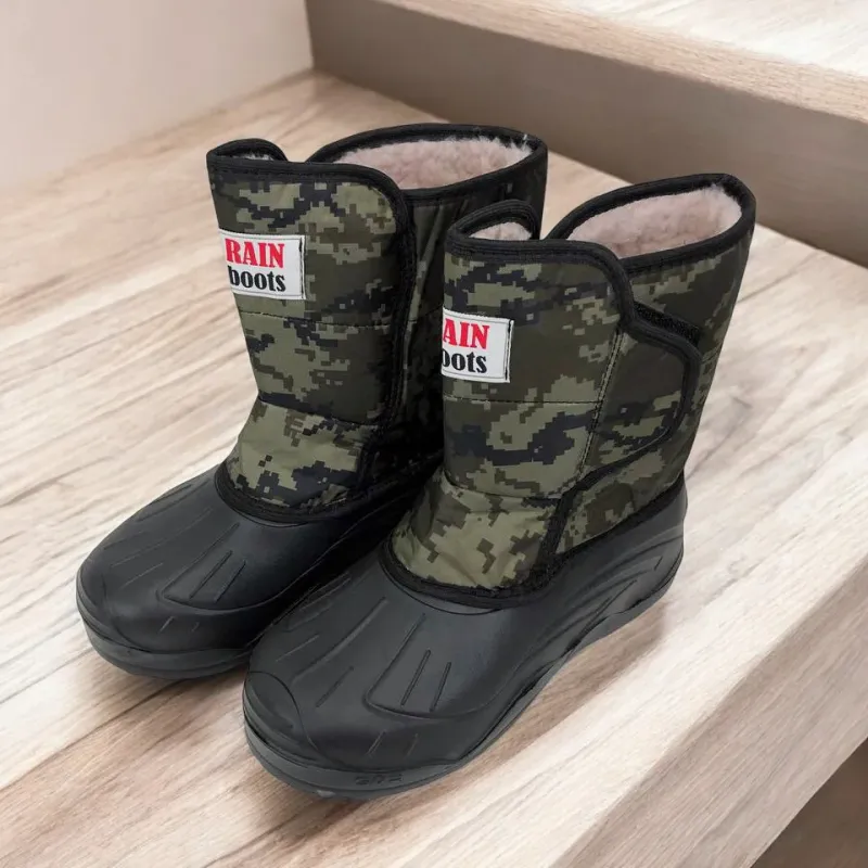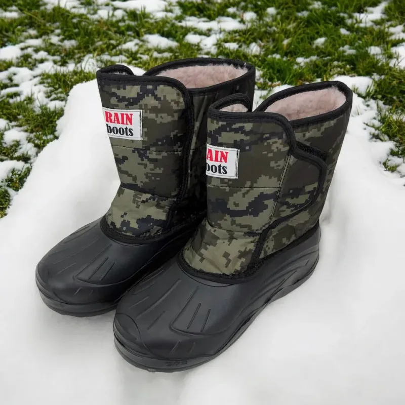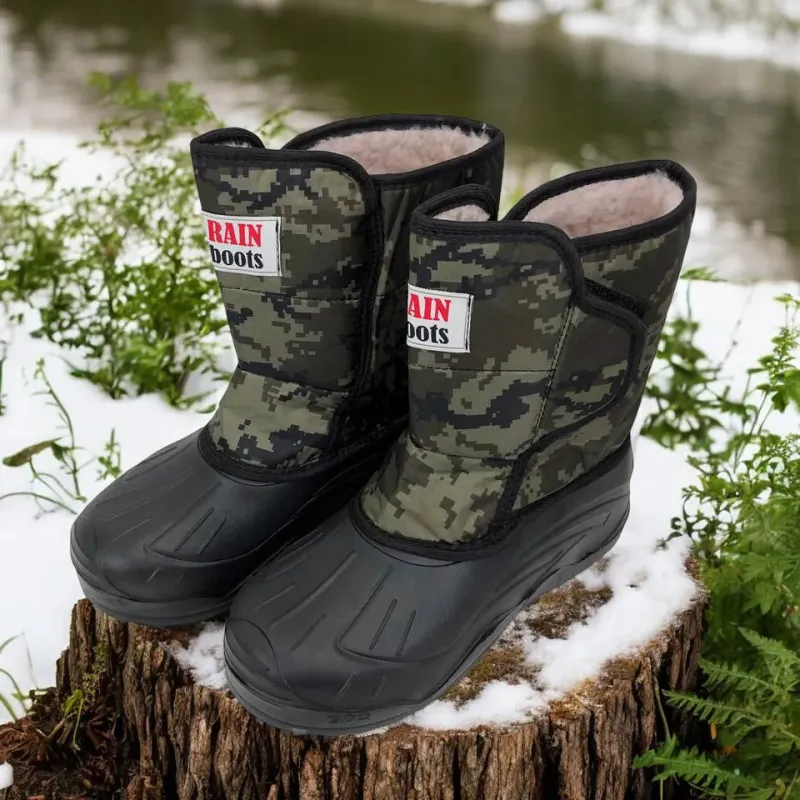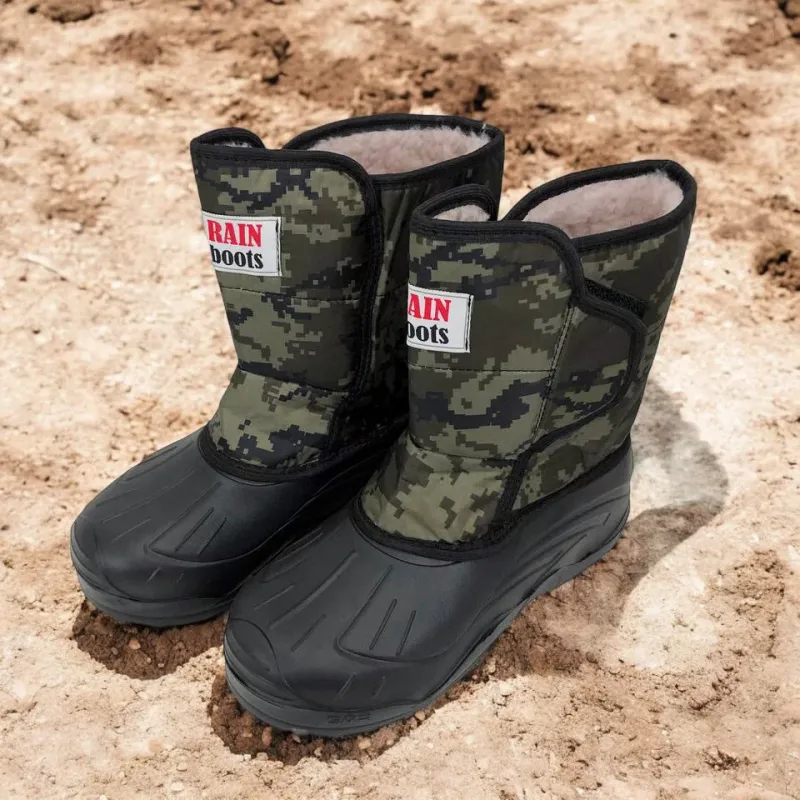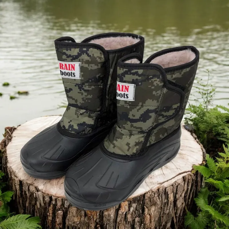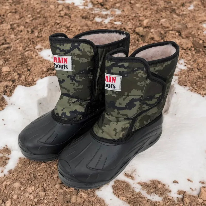 Модель отличается современным дизайном в стиле милитари, придающим оригинальность и маскировочный эффект — идеально для охотников, рыболовов или просто ценителей практического стиля. Утолщенная рельефная подошва гарантирует отличное сцепление с поверхностью, снижая риск скольжения. Эти сапоги все равно хорошо подходят для города и загородных условий.