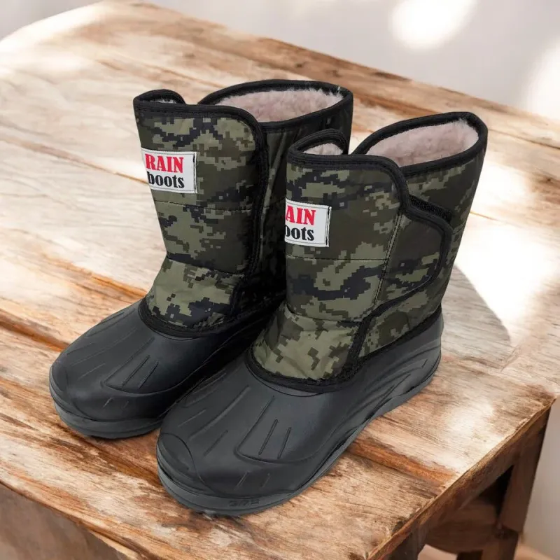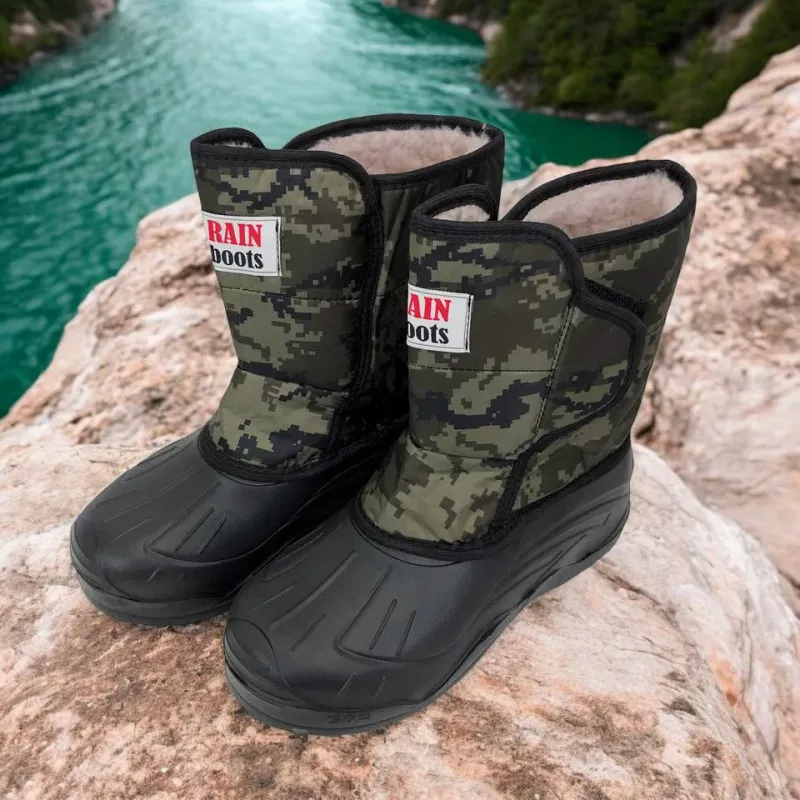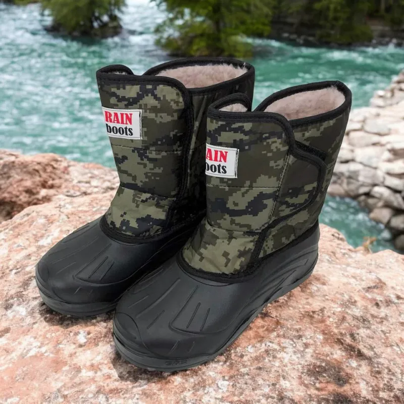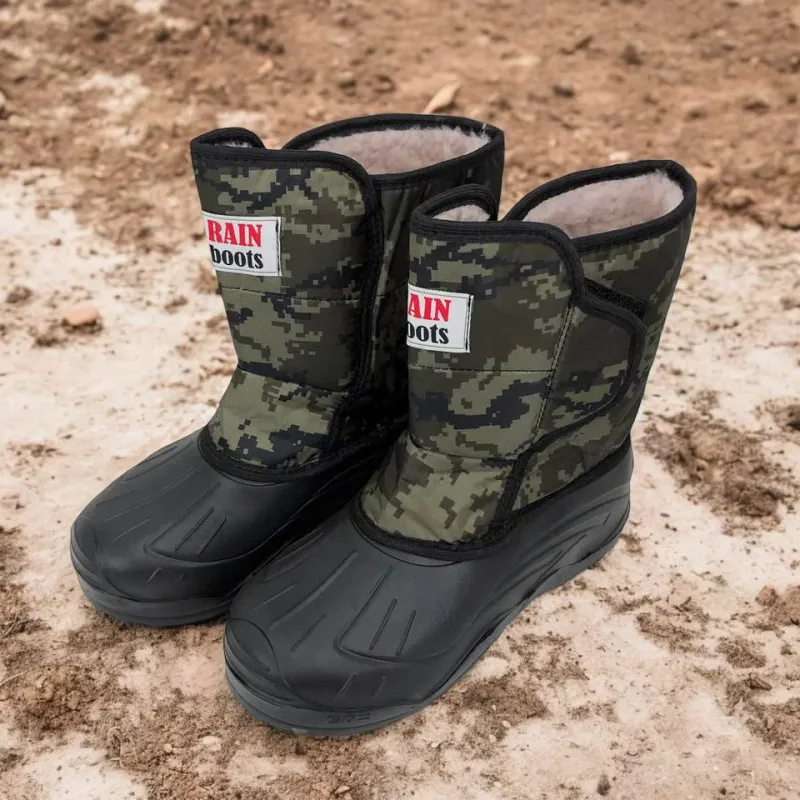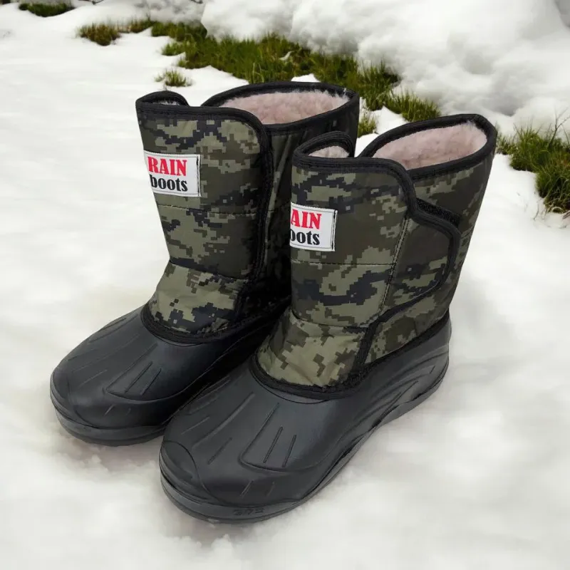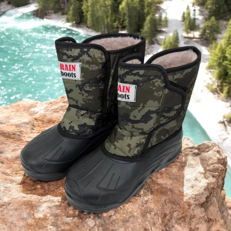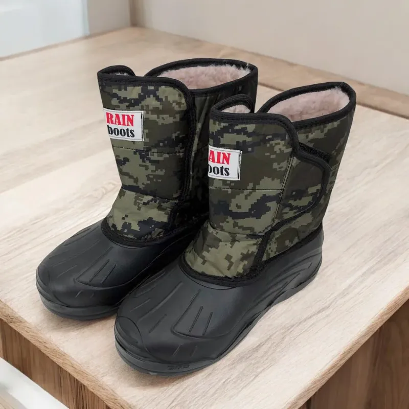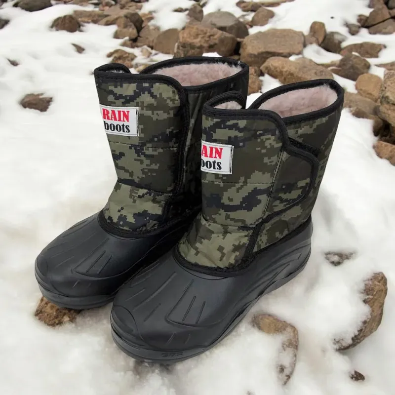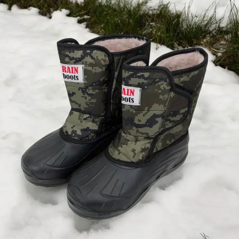 Модель отличается современным дизайном в стиле милитари, придающим оригинальность и маскировочный эффект — идеально для охотников, рыболовов или просто ценителей практического стиля. Утолщенная рельефная подошва гарантирует отличное сцепление с поверхностью, снижая риск скольжения. Эти сапоги все равно хорошо подходят для города и загородных условий.