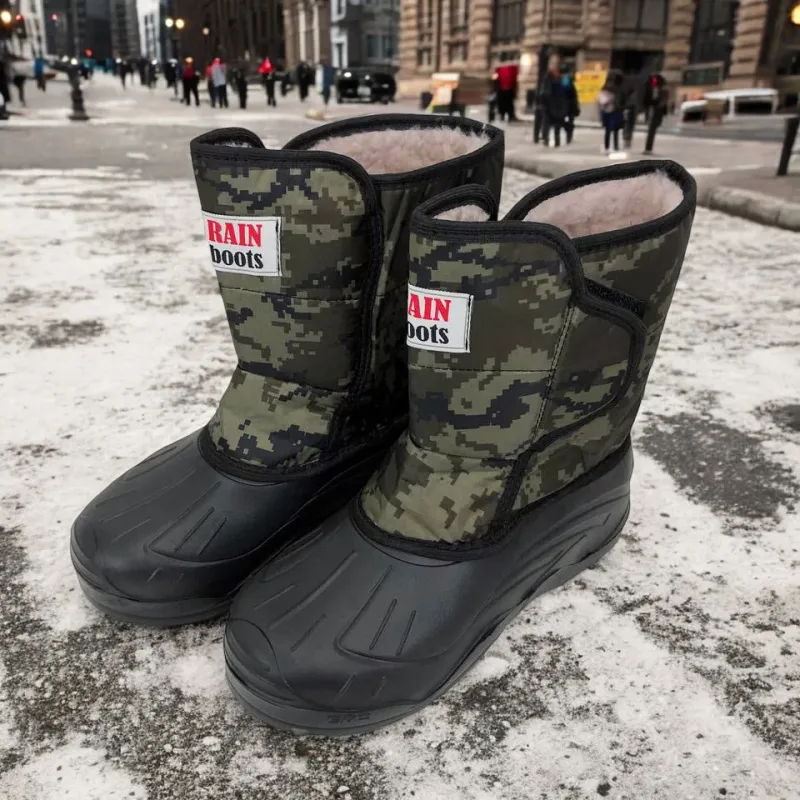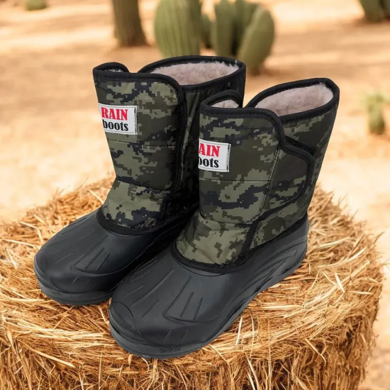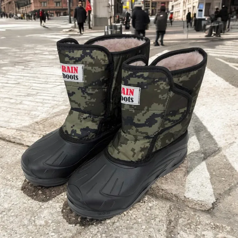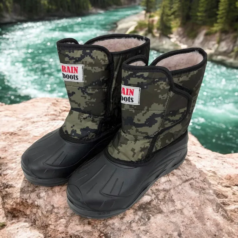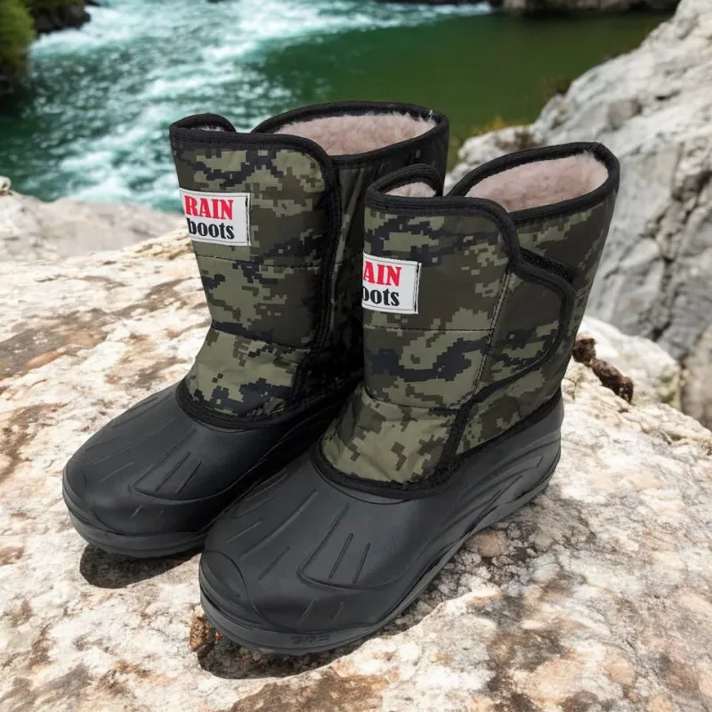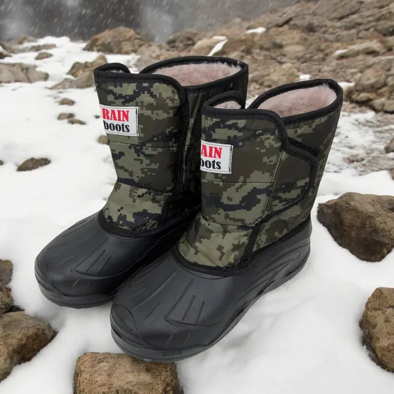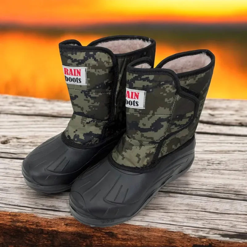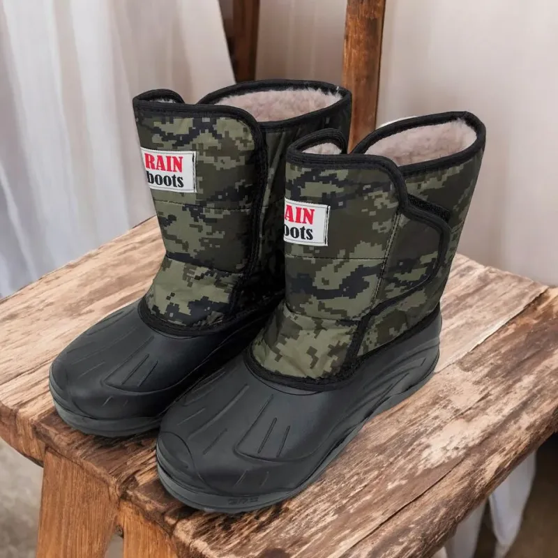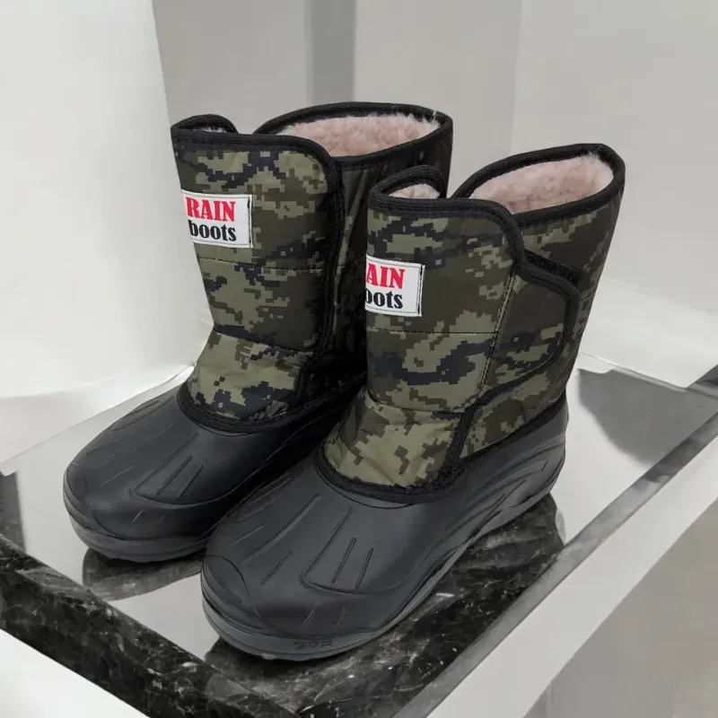 Модель отличается современным дизайном в стиле милитари, придающим оригинальность и маскировочный эффект — идеально для охотников, рыболовов или просто ценителей практического стиля. Утолщенная рельефная подошва гарантирует отличное сцепление с поверхностью, снижая риск скольжения. Эти сапоги все равно хорошо подходят для города и загородных условий.