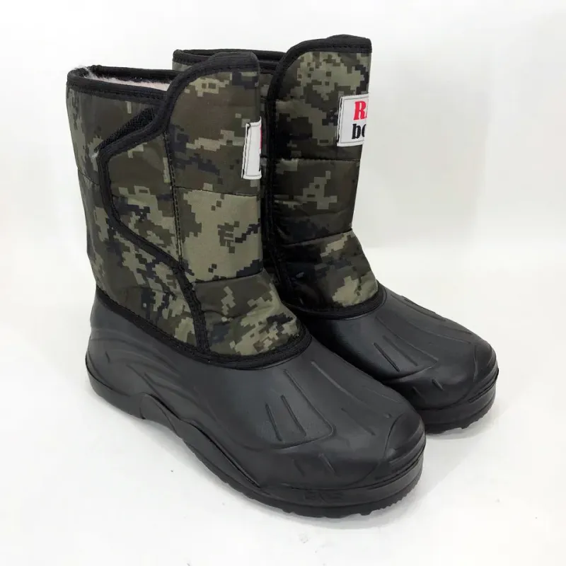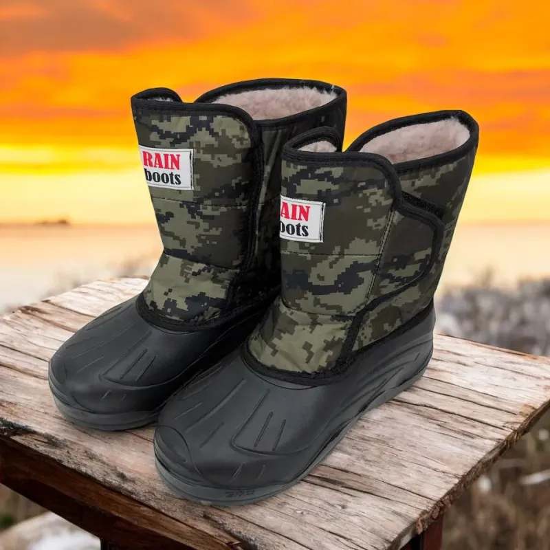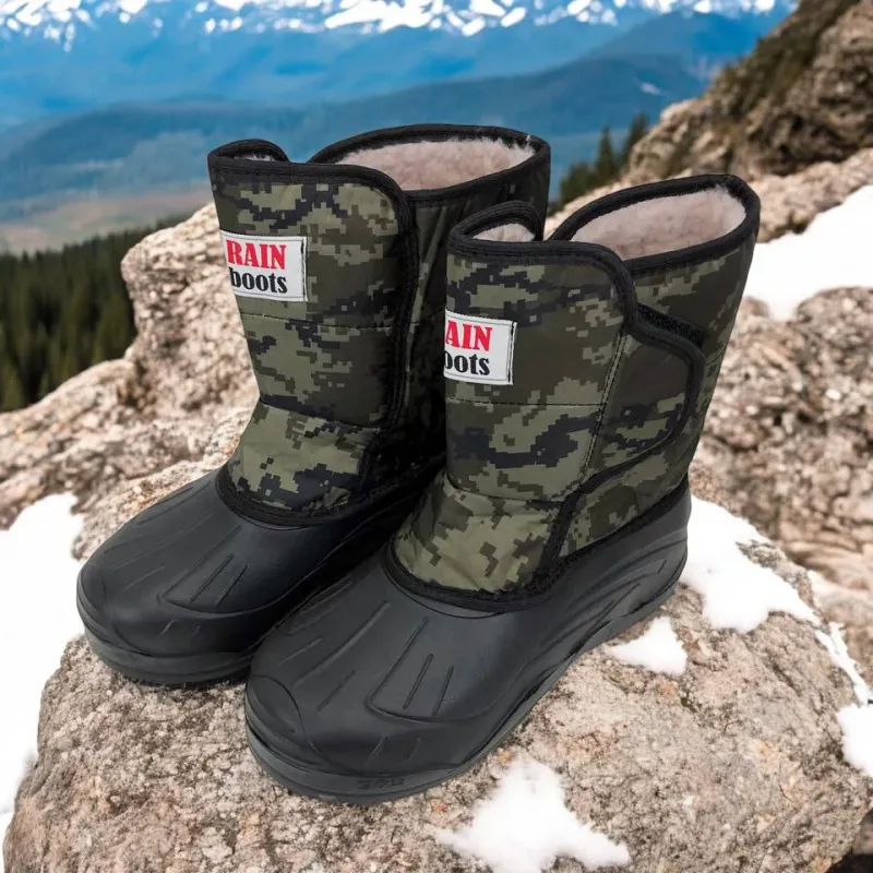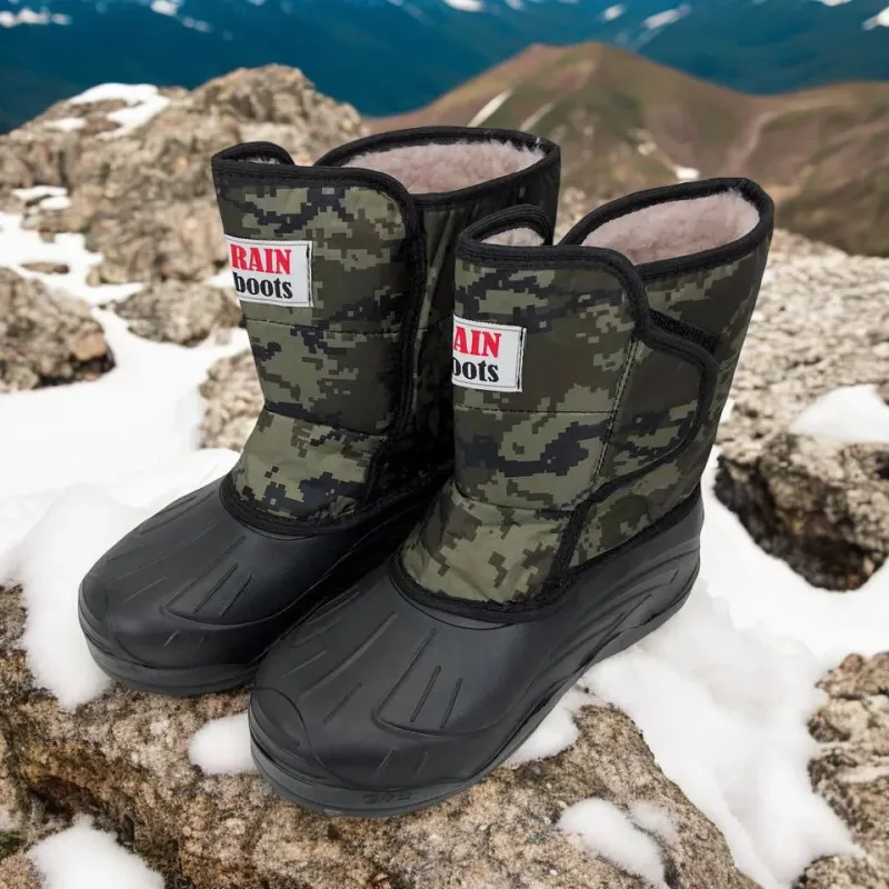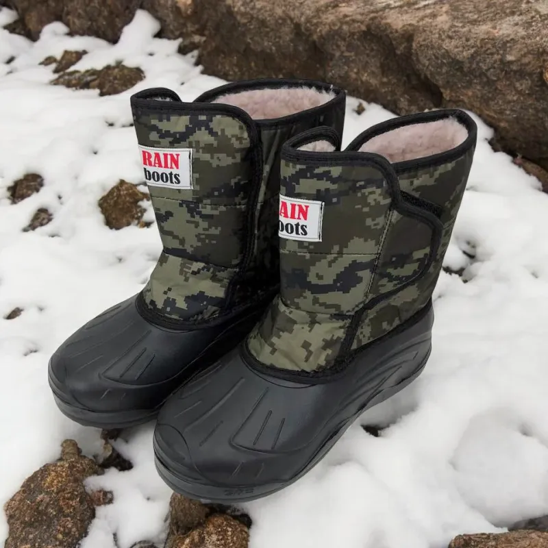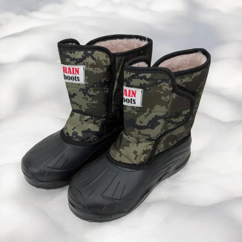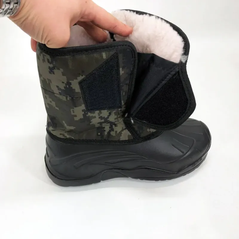 Мужские утепленные сапоги с камуфлированным верхом – это идеальная обувь для активного зимнего использования. Они сочетают в себе защиту от влаги, снега и холода благодаря водонепроницаемому полимерному низу и плотному утепленному текстильному верху. Внутренний мех создает комфортные условия даже во время сильных морозов. Застежка на липучке обеспечивает удобную и быструю обуву.