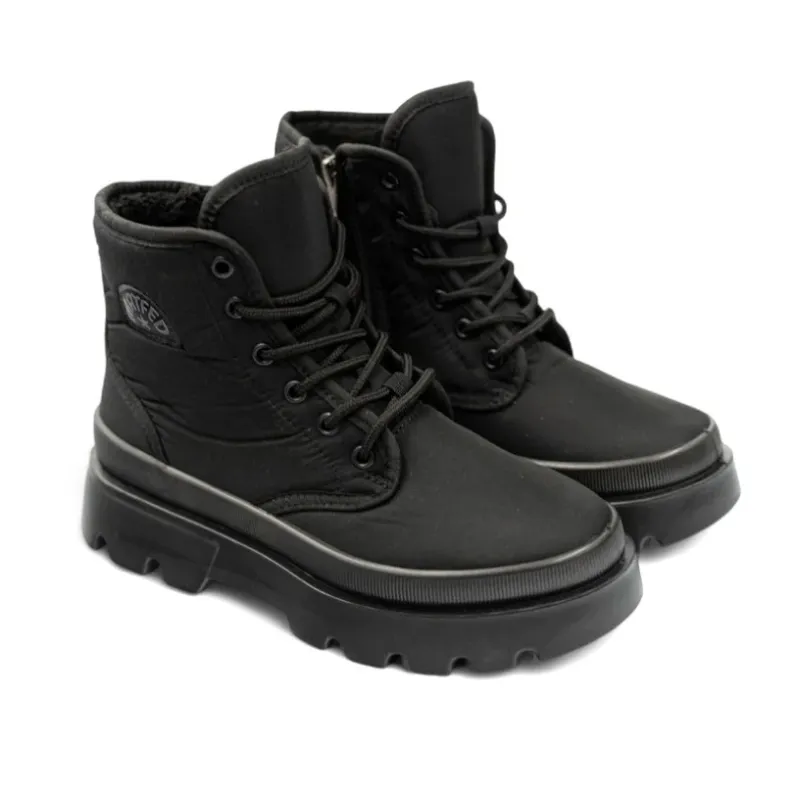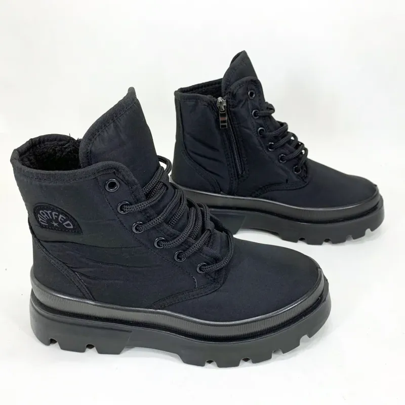 Внутреннее утепление гарантирует тепло даже в морозные дни, а мягкая подкладка приятна ноге. Прочная рифленая подошва обеспечивает отличное сцепление с любой поверхностью, что снижает риск скольжения. Шнуровка позволяет удобно отрегулировать посадку, а молния сбоку добавляет удобства при обувании.