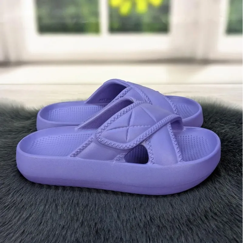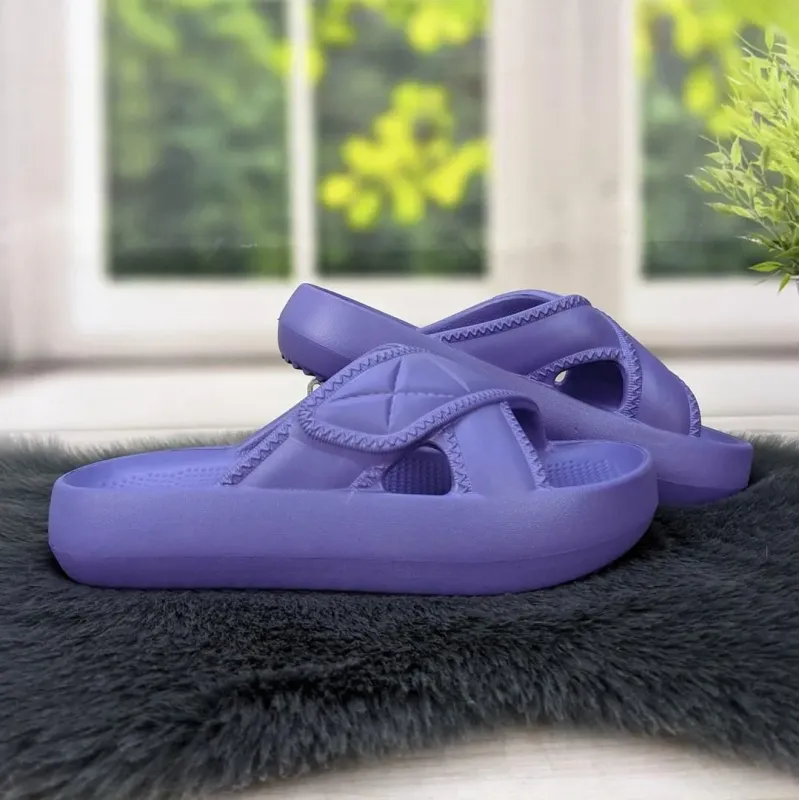 Яскраві та неймовірно зручні жіночі шльопанці від української фабрики Dago Style у ніжному фіолетовому (бузковому) кольорі. Ця модель з трендовим дизайном "навхрест" стане вашим улюбленим взуттям цього літа. Вони ідеально підходять для пляжного відпочинку, прогулянок містом, відвідування басейну або як комфортне та стильне домашнє взуття. Шльопанці виготовлені з сучасного матеріалу ЕВА (піна), що робить їх практично невагомими на нозі. Масивна підошва-платформа не лише додає кілька сантиметрів зросту, але й забезпечує чудову амортизацію при ходьбі, згладжуючи нерівності поверхні. Текстурована устілка з масажним ефектом запобігає ковзанню стопи, навіть якщо взуття мокре. Модель повністю вологостійка, гіпоалергенна та дуже проста у догляді — будь-які забруднення легко змиваються водою. Широкі лямки м'яко охоплюють ногу, не натираючи шкіру, що гарантує комфорт протягом усього дня. Характеристики: Матеріал: Піна ЕВА (EVA) Колір: Фіолетовий (Бузковий) Виробник: Dago Style Сезон: Літо / Цілорічно (басейн, дім) Стать: Жіночі Розміри в наявності: 37, 38, 39, 40, 41 Країна виробник: Україна