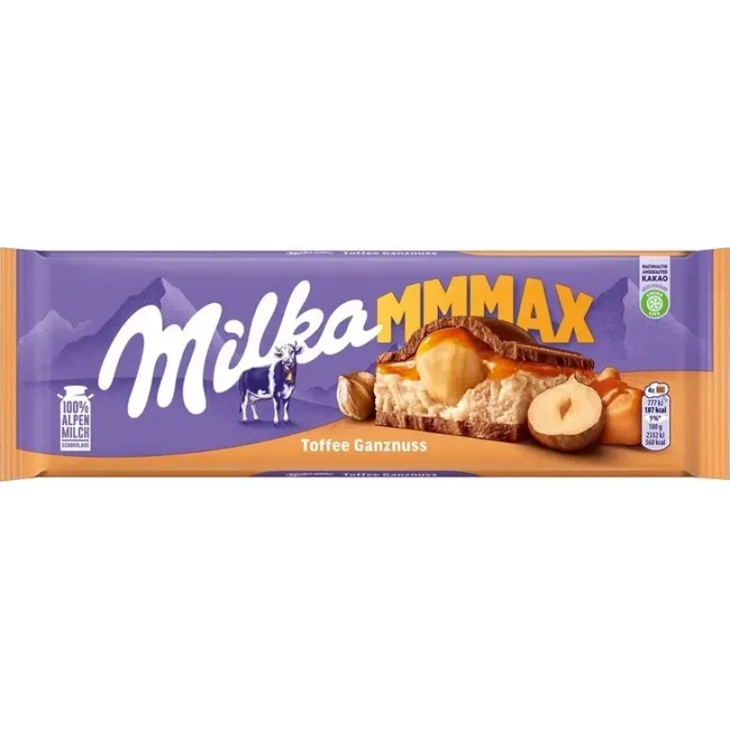 Шоколад Milka Toffee Ganznuss 300 г. Молочний з цілим фундуком та рідкою карамеллю (Мілька Тоффі)