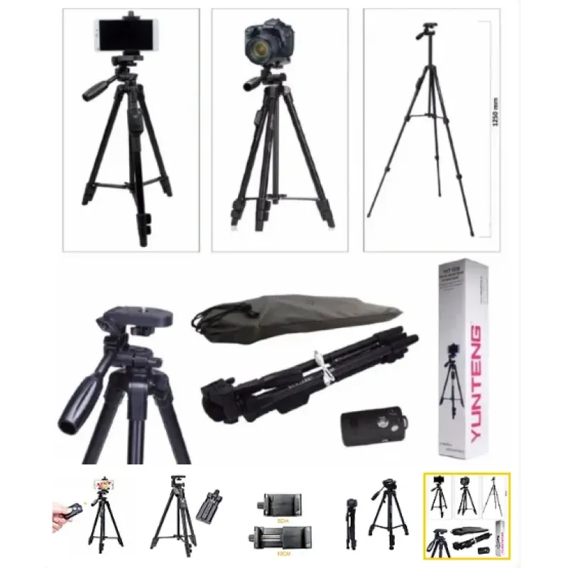 Штатив тринога - ідеальний аксесуар для фотографів та операторів, які потребують стабільної та надійної підтримки камери чи телефона під час зйомки. Наш штатив поставляється з пультом ДУ, який дозволяє керувати камерою чи телефоном на відстані.