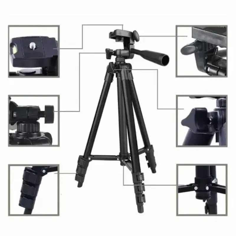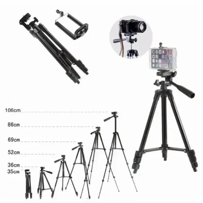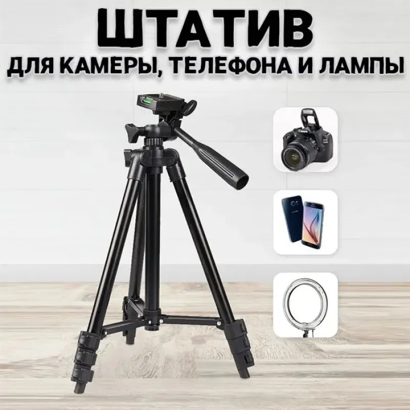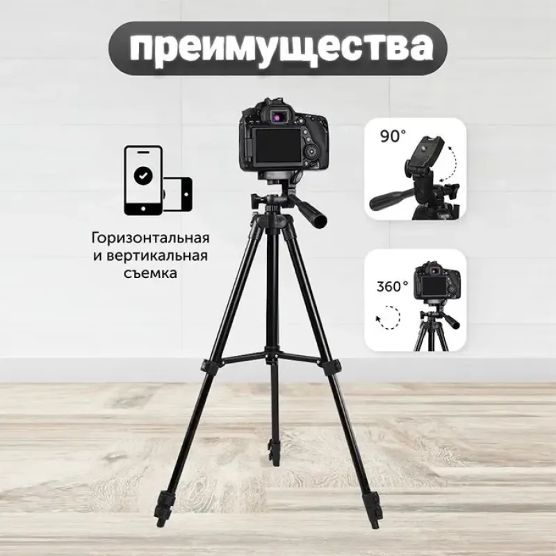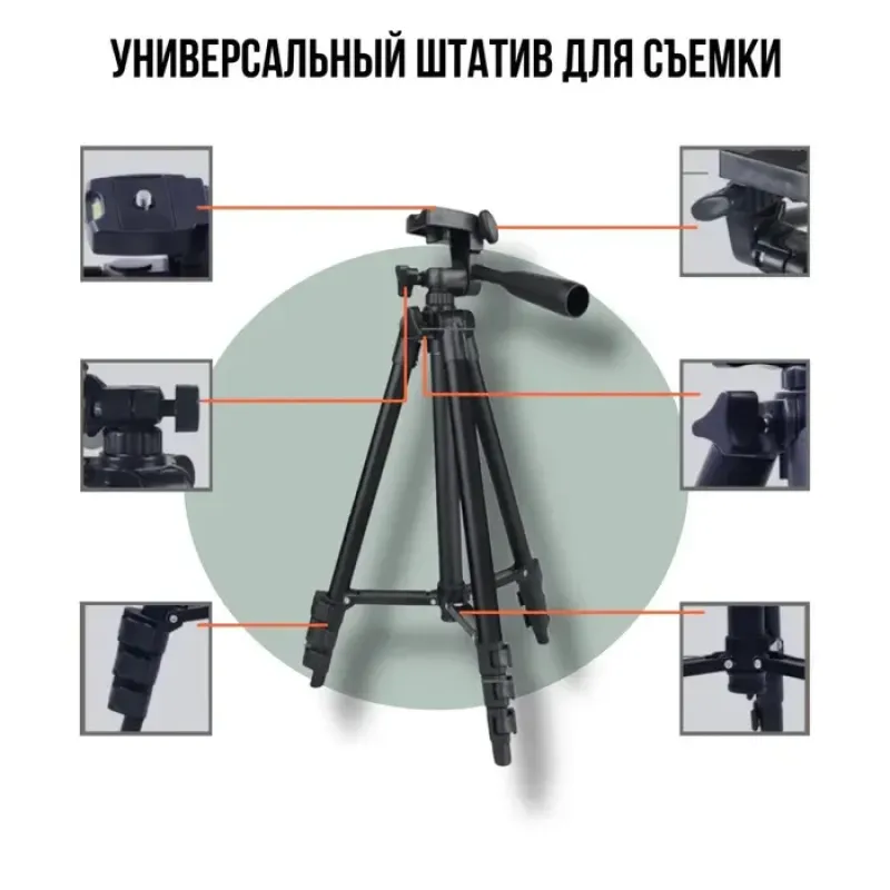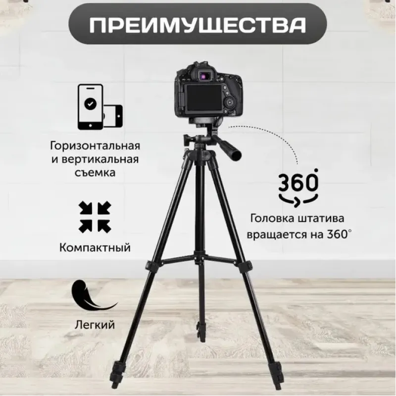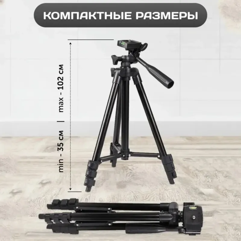 Портативний трипод для телефона і фотоапарата, який дозволяє вам зробити високоякісні фотографії та відео будь-де. Висота штатива регулюється від 0,35 до 1,02 метра, що дозволяє вам знаходити ідеальну позицію для зйомки.